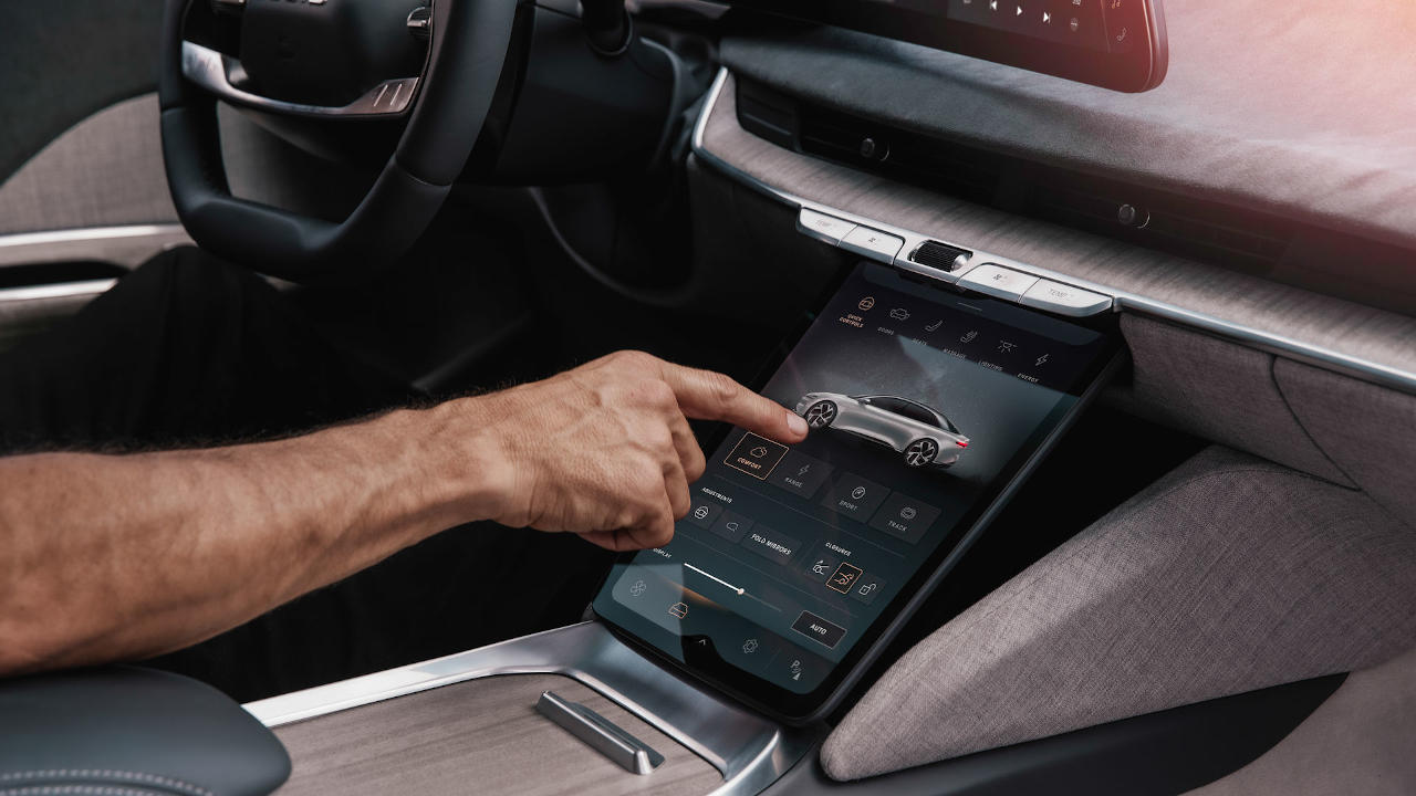 Οι θετικές εντυπώσεις δεν μένουν εκεί αφού η πολυτελής καμπίνα εντυπωσιάζει με τις λύσεις που έχουν εφαρμοστεί. Μπροστά από τον οδηγό υπάρχει μια κυρτή οθόνη ανάλυσης 5Κ με διαγώνιο στις 34 ίντσες. Μια επίσης μεγάλη οθόνη χαμηλότερα στην κεντρική κονσόλα δίνει πρόσβαση το σύστημα πολυμέσων αλλά και σε άλλες λειτουργίες και υπηρεσίες και μπορεί να “κρυφτεί” μέσα στο ταμπλό όταν δεν χρησιμοποιείται…