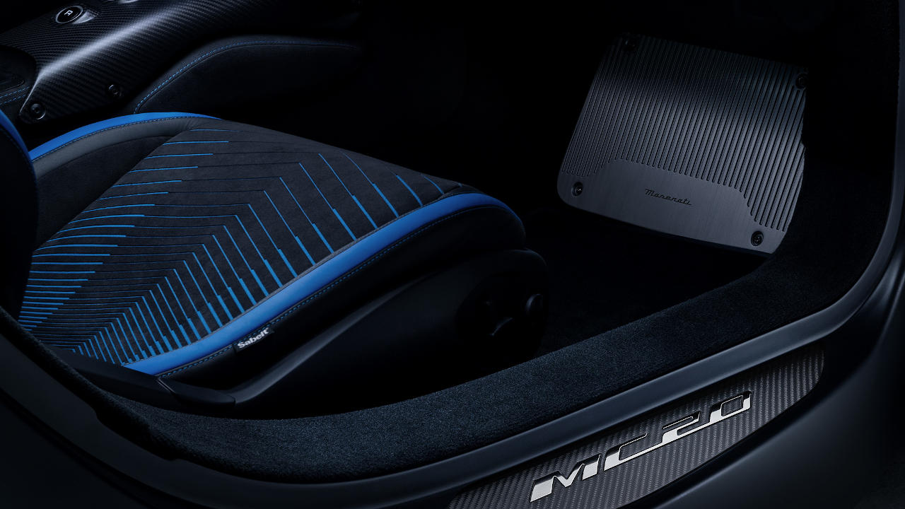 H καμπίνα της MC20 (από το Maserati Corse με το νούμερο να παραπέμπει στο έτος παρουσίασης) είναι “τυπικά” σπορ και λιτή σχεδιαστικά με τα ανθρακονήματα να κυριαρχούν ως υλικό κατασκευής. Οι σχεδιαστικές ακρότητες που θα περίμενε κανείς να δει κανείς σε ένα supercar απουσιάζουν, άλλωστε ποιος θα έχει χρόνο να τις κοιτάζει όταν η MC20 θα βρίσκεται σε κίνηση; Ο οδηγός έχει στη διάθεση του μια οθόνη πληροφοριών με διαγώνιο στις δέκα ίντσες ενώ ίδιου μεγέθους είναι και η οθόνη αφής του συστήματος πολυμέσων. Όπως βλέπετε και στις φωτογραφίες η MC20 φέρει πόρτες που ανοίγουν προς τα πάνω, κάτι που γίνεται για πρώτη φορά σε Maserati και διευκολύνει την είσοδο αλλά και την έξοδο από την καμπίνα.