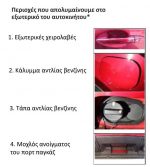 Όπως μπορείτε να δείτε και στις πιο κάτω εικόνες, συνολικά 18 σημεία είναι τα σημεία στα οποία πρέπει να γίνεται η απολύμανση, ξεκινώντας από το αμάξωμα ως και την καμπίνα. Έτσι, πρέπει να προσέχουμε κατά την απολύμανση να περνάμε με ειδικό υγρό χειρολαβές, κάλυμα αντλίας βενζίνης, τάπα αντλίας βενζίνης και όλα τα σημεία με τα οποία ερχόμαστε σε επαφή στο εσωτερικό.