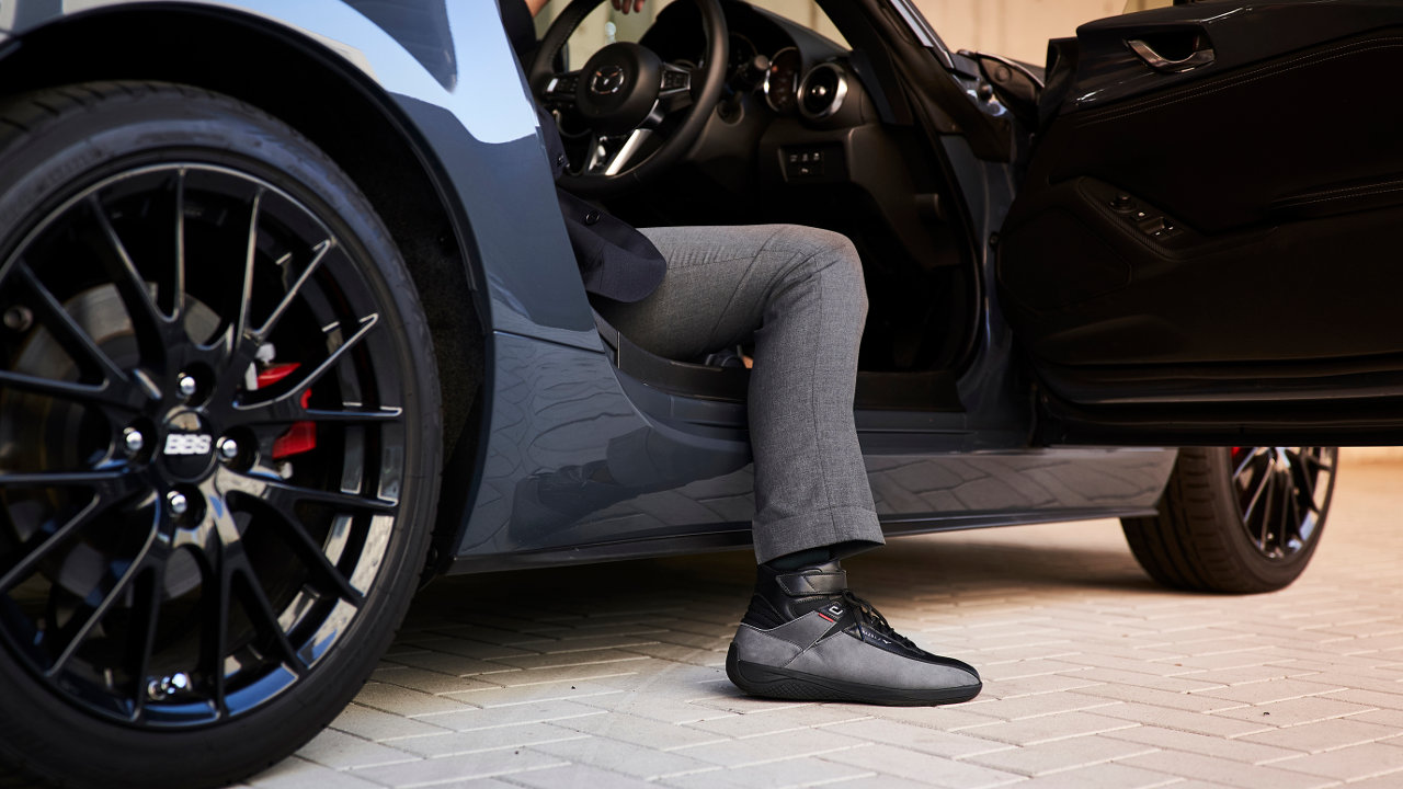 Ο στόχος από την αρχή ήταν να επιτευχθεί η τέλεια συμβίωση μεταξύ οδηγού, παπουτσιού και οχήματος. Για τη Mazda, η οδηγική απόλαυση και η αίσθηση Jinba Ittai – η ενότητα μεταξύ αναβάτη και αλόγου, μεταξύ ανθρώπου και οχήματος – είναι πάντα στο επίκεντρο των προϊόντων της. Το να φέρεις αυτά τα χαρακτηριστικά σε ένα παπούτσι οδήγησης απαιτούσε προηγμένες τεχνολογίες, σχολαστική προσοχή στη λεπτομέρεια και “ανθρωποκεντρική” προσέγγιση στον σχεδιασμό. Χρησιμοποιώντας τις γνώσεις τους για την κατασκευή οχημάτων, οι σχεδιαστές της Mazda μπόρεσαν να δημιουργήσουν ένα παπούτσι με όμορφες αναλογίες και φινίρισμα υψηλής ποιότητας που προκαλεί τα συναισθήματα όπως ακριβώς και ένα αυτοκίνητο Mazda.