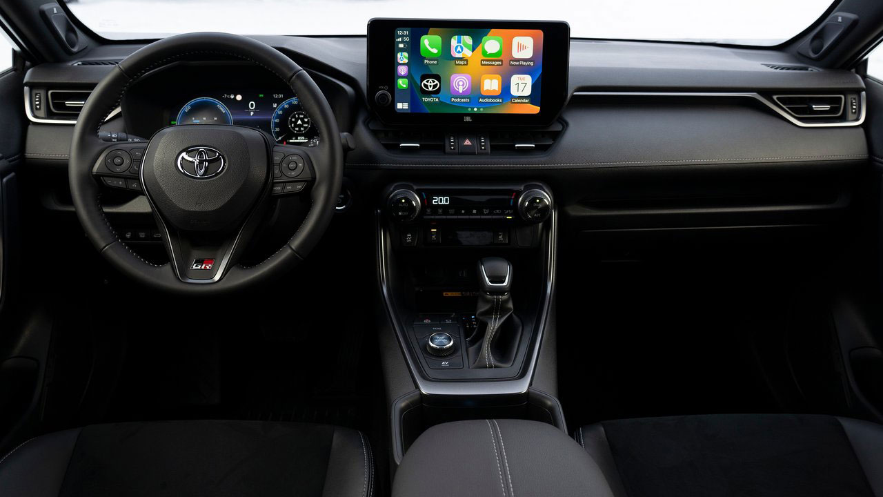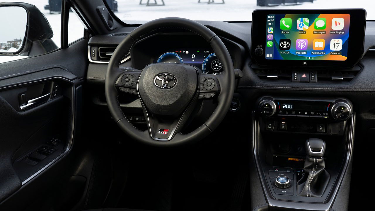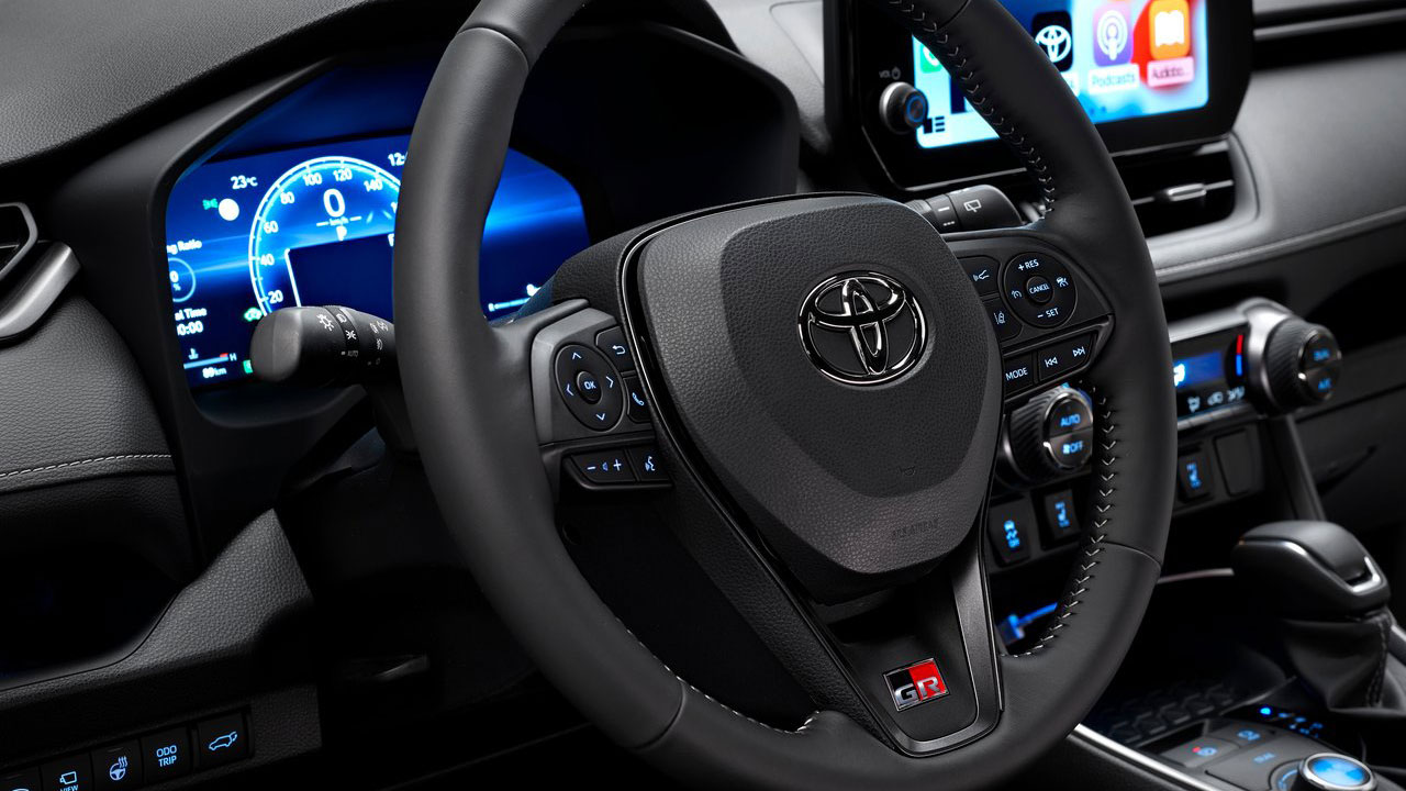 Οι αλλαγές της Toyota για τη νέα της έκδοση συνεχίζονται την καμπίνα με το γνωστό σήμα της Gazoo Racing να κάνει την εμφάνισή του στο κάτω μέρος του τιμονιού που φέρει έξτρα διακοσμητικά στοιχεία στις ακτίνες του, σε σκούρο γκρι χρώμα. Το λογότυπο παρουσιάζεται ανάγλυφο και στα μαξιλαράκια των εμπρός σπορ σχεδίασης καθισμάτων, τα οποία φέρουν επενδύσεις από συνθετικό δέρμα. Στον βασικό εξοπλισμό του RAV4 περιλαμβάνεται το νέο σύστημα πολυμέσων της Toyota που φέρει οθόνη αφής 10,5 ιντσών, ο ψηφιακός πίνακας πληροφοριών των 12,3 ιντσών για το οδηγό αλλά και το αναβαθμισμένο πακέτο ηλεκτρονικών συστημάτων ασφάλειας και υποβοήθησης Toyota Safety Sense.
