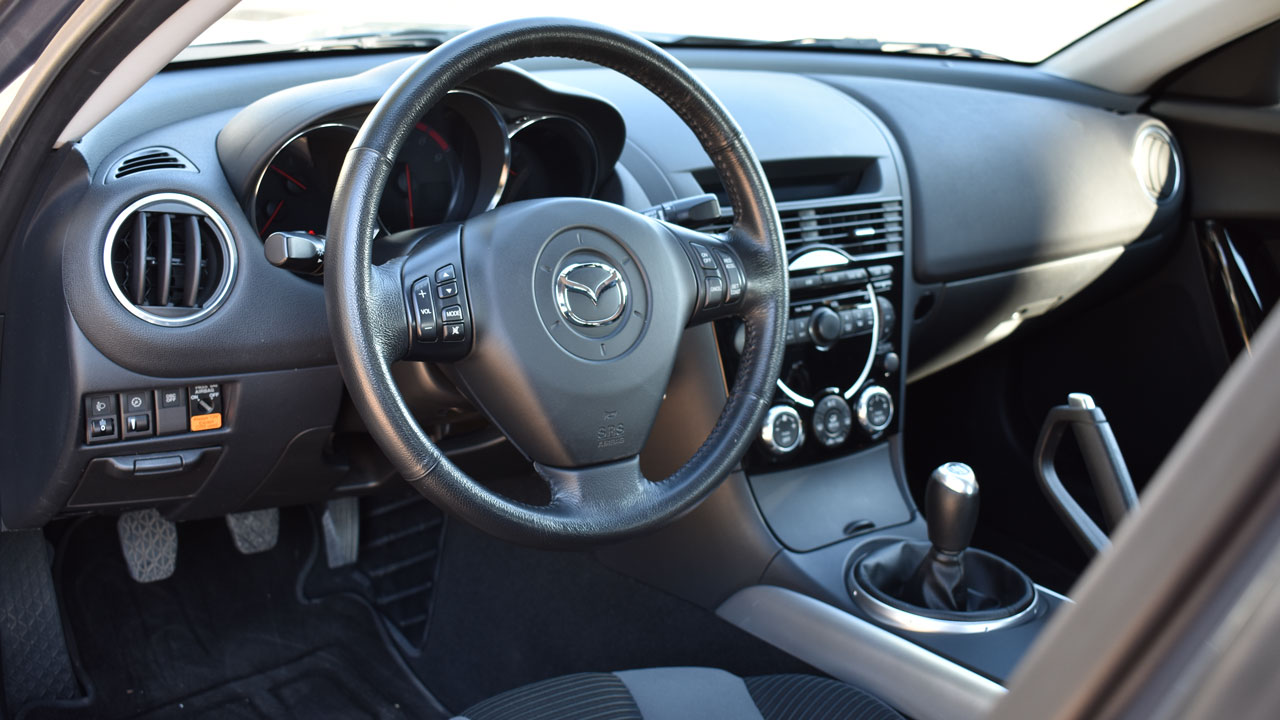 Το τιμόνι του Mazda RX-8 από την άλλη, είναι και αυτό γρήγορο, όχι όμως όσο του “S2k”, προσφέροντας πάντως καλύτερη αίσθηση. Το πεντάρι κιβώτιο έχει και αυτό μικρές και σαφείς διαδρομές αλλά και πάλι δεν φτάνει την αίσθηση του κιβωτίου της Honda. Η ανάρτησή του με διπλά ψαλίδια εμπρός και πολλαπλούς συνδέσμους πίσω κάνει εξαιρετική δουλειά και “παντρεύει” με επιτυχία άνεση και δυναμικά χαρακτηριστικά, δίνοντας έμφαση στο δεύτερο σκέλος. Η θέση οδήγησης είναι καλύτερη, λόγω περισσότερων ρυθμίσεων και σίγουρα το αυτοκίνητο σε κάνει να νιώθεις πιο άνετα και μπορείς να κινηθείς πολύ γρήγορα, με λιγότερη προσπάθεια από αυτήν που καταβάλεις στο Honda.