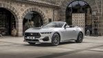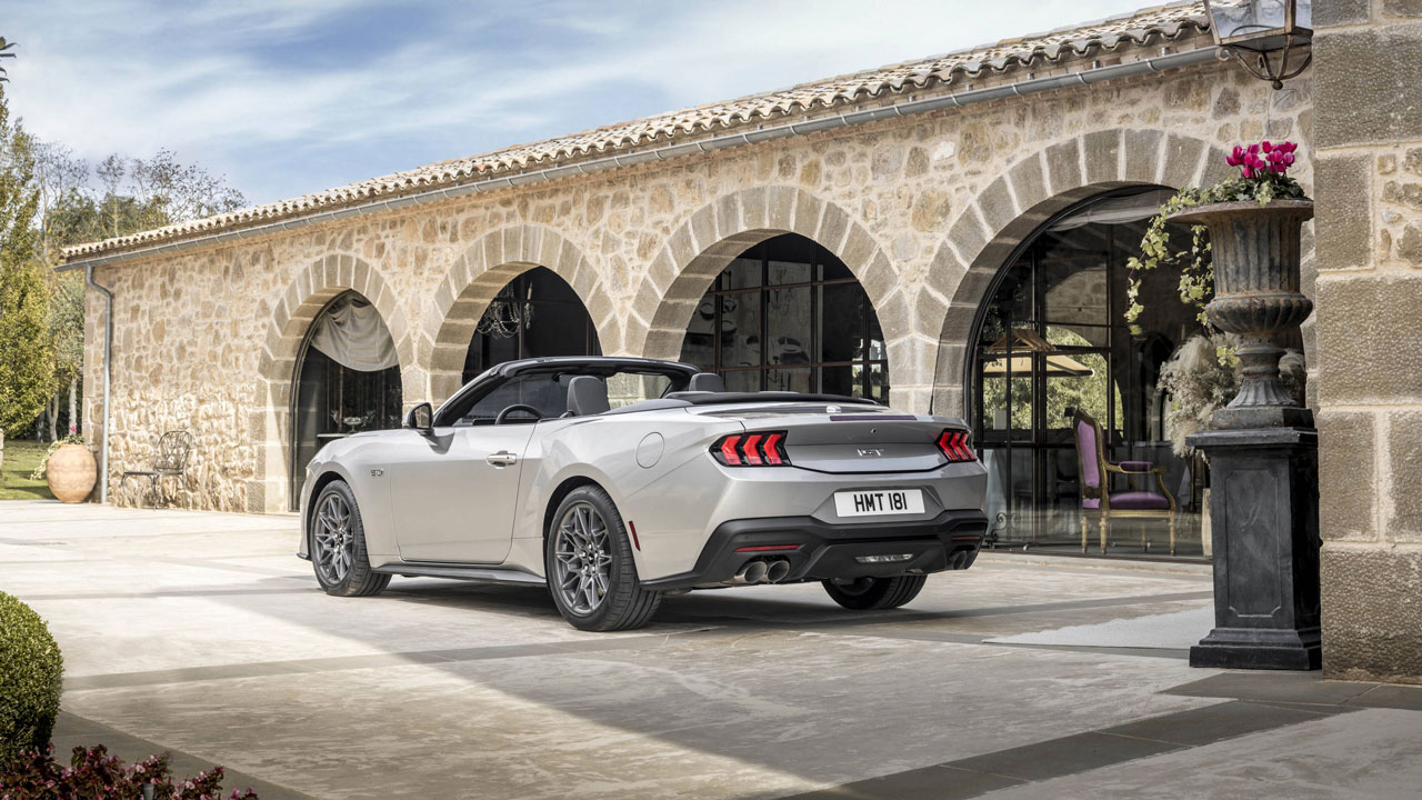 Στο πίσω μέρος υπάρχει μία σταθερή αεροτομή και δύο διπλές απολήξεις, ενώ τα φωτιστικά σώματα ακολουθούν το χαρακτηριστικό πλέον μοτίβο των τριών κάθετων γραμμών. Η ολοκαίνουργια Mustang λανσάρεται με 12 χρωματικές επιλογές, συμπεριλαμβανομένων των τριών νέων αποχρώσεων Blue Ember, Vapor Blue και Yellow Splash. Όσο για την “ανοιχτή” έκδοση, η μονωμένη υφασμάτινη οροφή ανοίγει/κλείνει με ένα απλό άγγιγμα και με την απαγκίστρωση της σχετικής κεντρικής ασφάλειας στο εσωτερικό.