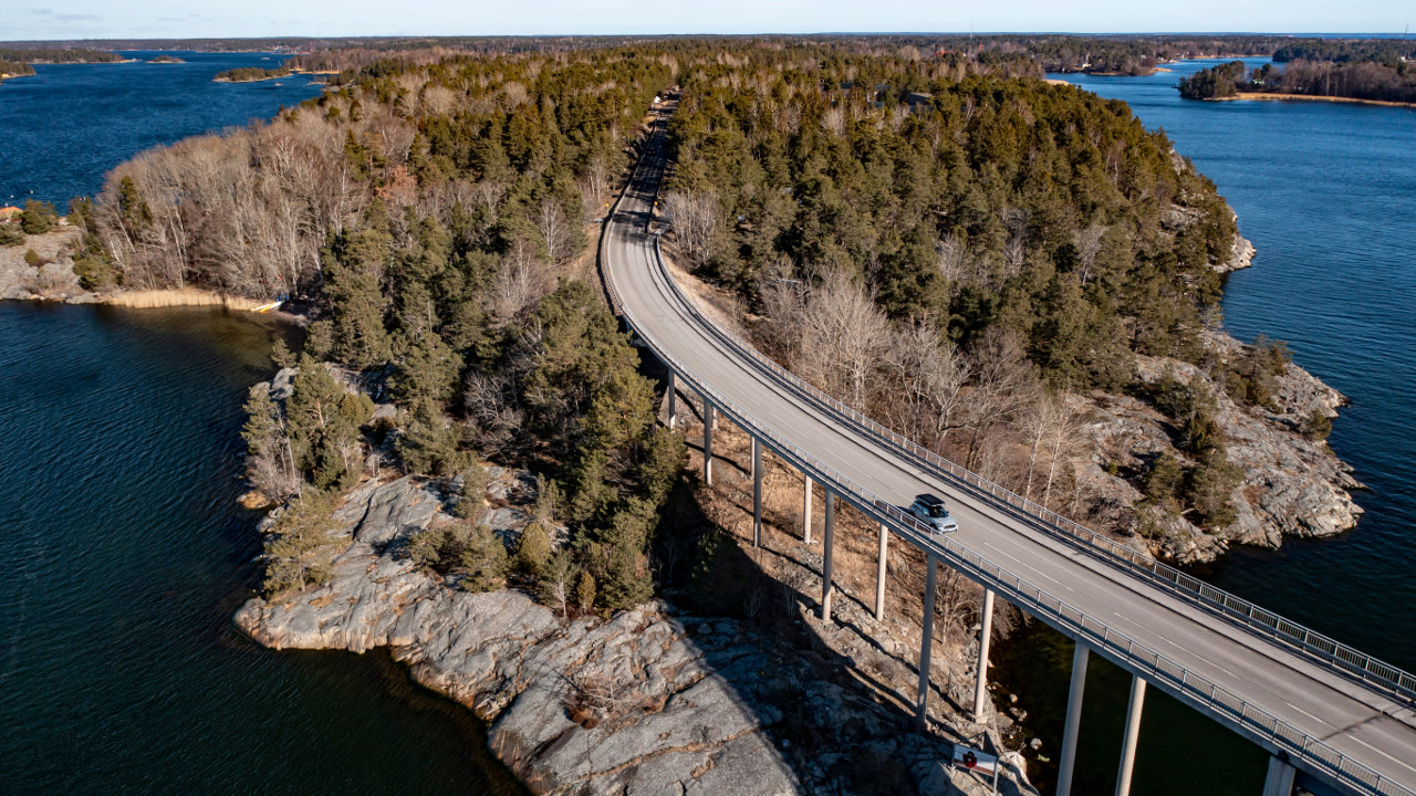 Μετά από λίγα μόλις χιλιόμετρα ξεκινώντας από το Björknäs, ο αυτοκινητόδρομος 222 κατευθύνεται ανατολικά μέσω του φυσικού καταφυγίου Ekobergets, διασχίζοντας επανειλημμένα τα φιόρδ που κόβουν βαθιά την ενδοχώρα μέσω ελαφρώς κυρτών γεφυρών που μοιάζουν να αιωρούνται. Στη διασταύρωση στο Gustavsberg, ο δρόμος οδηγεί ελαφρώς νότια στο εκτεταμένο οδικό δίκτυο προς το Ingarö και όλο και πιο βαθιά στο χειμωνιάτικο τοπίο. Με το κατάλληλο για off-road οδήγηση plug-in υβριδικό MINI, μία εκδρομή σε μη ασφαλτοστρωμένους δρόμους αποτελεί επίσης μία ευχάριστη περιπέτεια αναζητώντας τα τυπικά σουηδικά ξύλινα σπιτάκια σε κόκκινο χρώμα που είναι κρυμμένα σε απόσταση. Το κλασικό σκανδιναβικό χρώμα που χρησιμοποιείται σε αυτά οφείλεται στην υψηλή περιεκτικότητα σε χαλκό στις γήινες χρωστικές που απαιτούνται για την ανάμειξη του χρώματος.