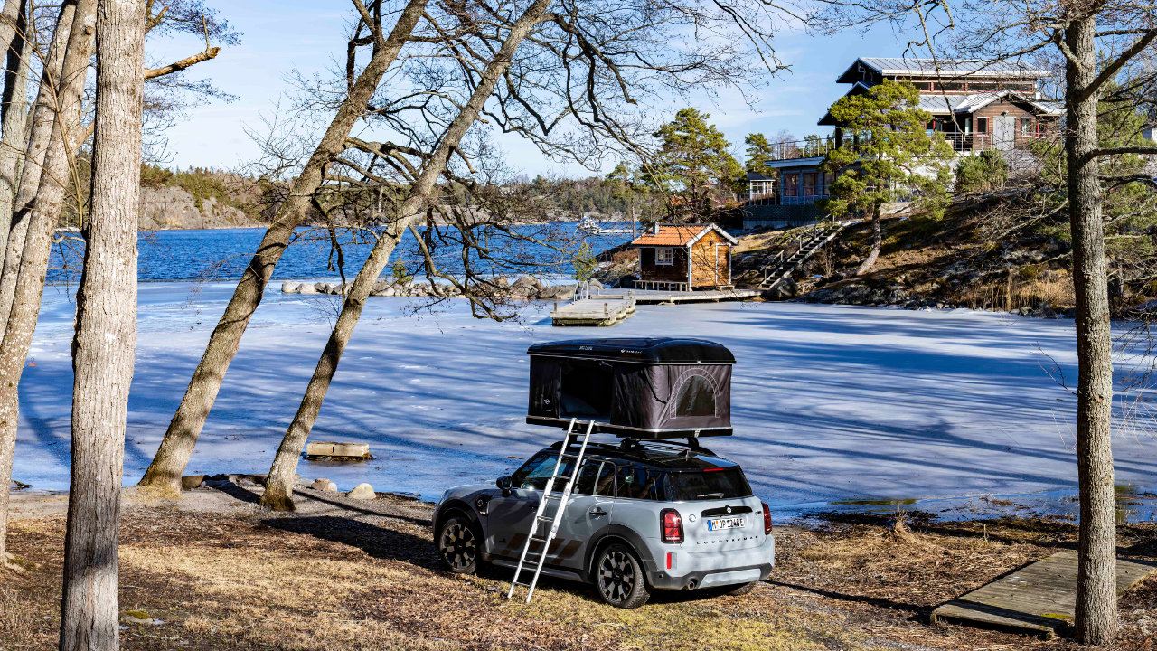 Η θέα του υπέροχου λευκού πάγου ψηλά στο δάσος γύρω από τη γραφική λίμνη Fiskmyran είναι πάντα μαγευτική. Ώρα για ένα σύντομο διάλειμμα για το στήσιμο της σκηνής οροφής Autohome και λίγες στιγμές χαλάρωσης σε φυσικό περιβάλλον. Κάτι που μέχρι πρότινος έμοιαζε με μία κλειστή, συμβατική μπαγκαζιέρα οροφής, τώρα ανοίγει αυτόματα προς τα πάνω εν ριπή οφθαλμού ξεκουμπώνοντας δύο μεντεσέδες ασφαλείας μπροστά και πίσω και με τη βοήθεια τεσσάρων πνευματικών ελατηρίων.
