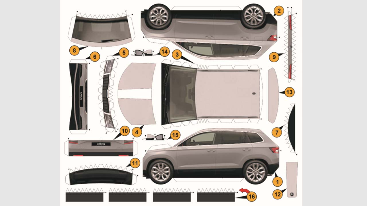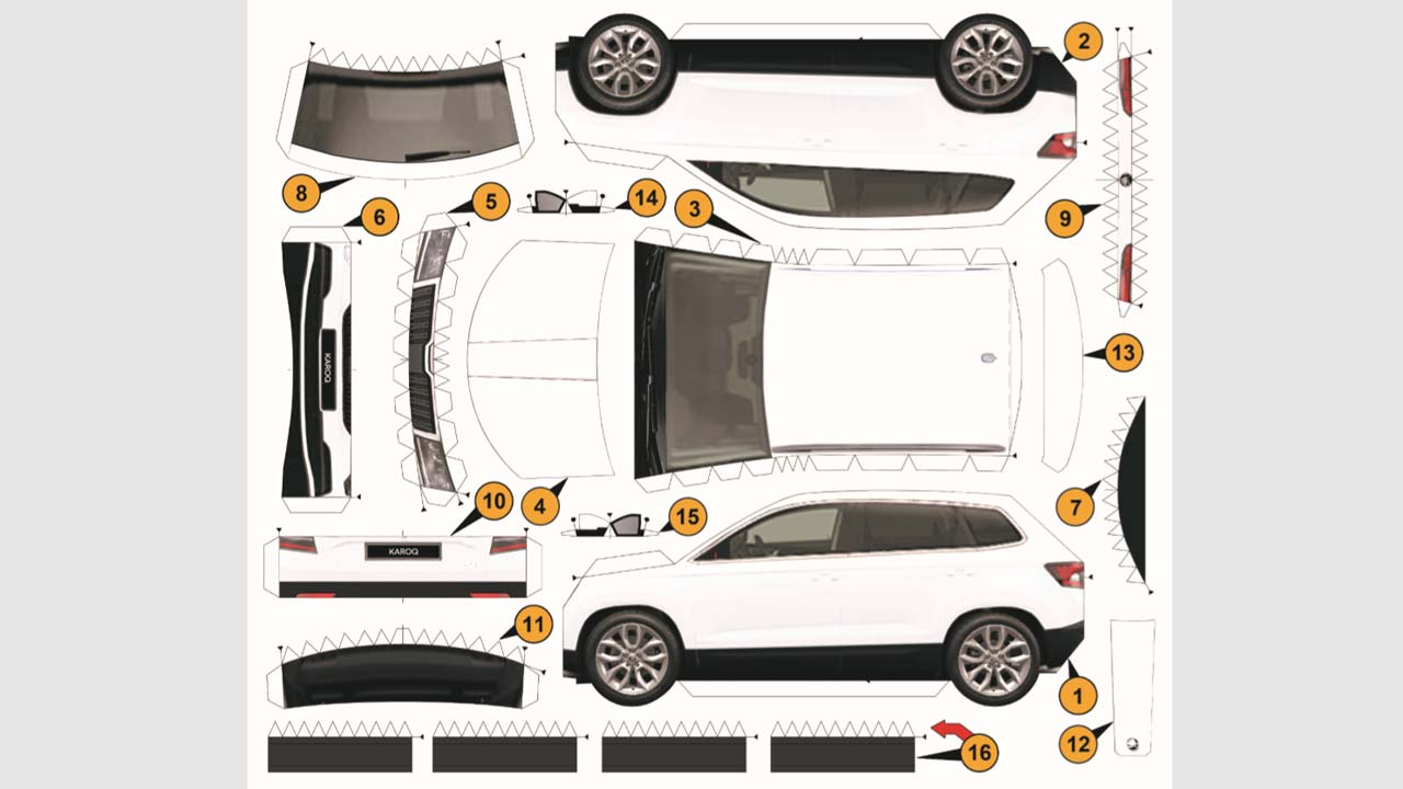 Σήμερα είναι η σειρά της Skoda να παρουσιάσει το δικό της 3D χάρτινο μοντέλακι και συγκεκριμένα το Karoq, το οποίο μπορούμε όλοι να εκτυπώσουμε σε λευκό ή γκρι χρώμα στις εικόνες που ακολουθούν.