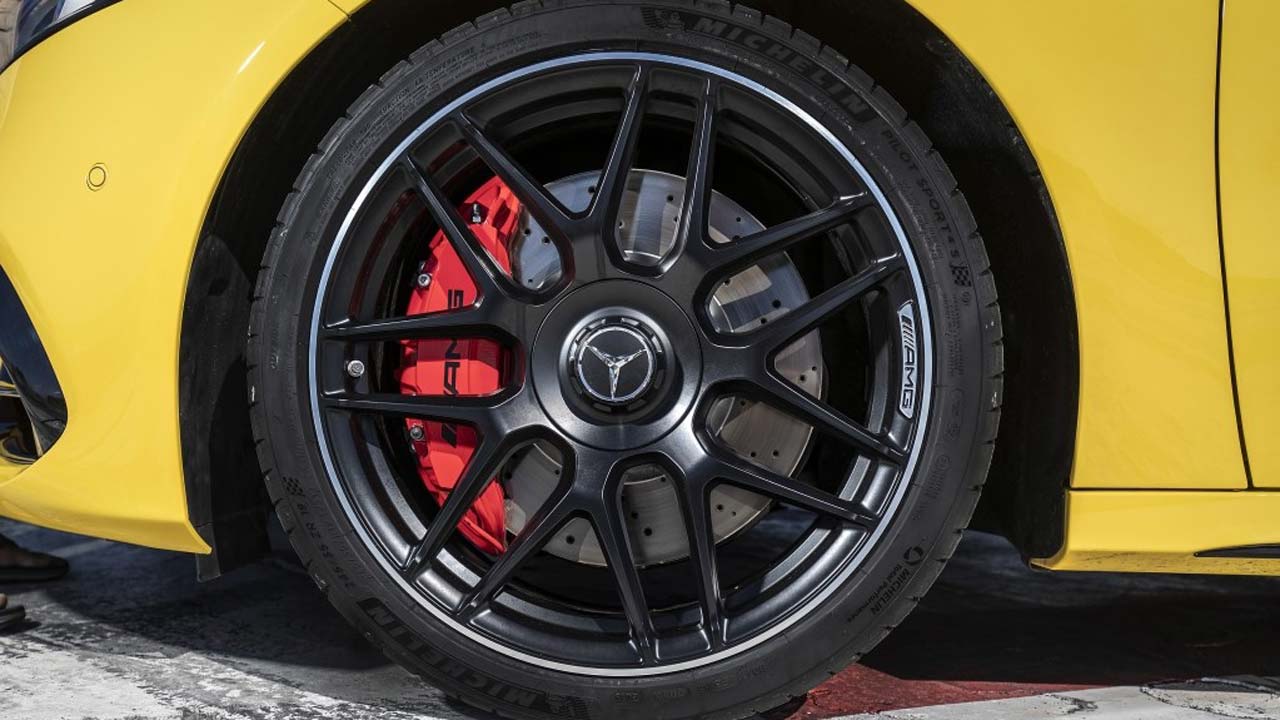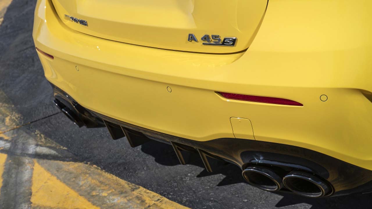 Η έκδοση S που δοκιμάσαμε διαθέτει και την πιο εντυπωσιακή εμφάνιση. Στο μπροστινό μέρος η μάσκα έχει επανασχεδιαστεί, ενώ στο πλαϊνό μέρος του προφυλακτήρα έχουν προστεθεί κάποια μικρά πτερύγια για καλύτερη αεροδυναμική και ψύξη των φρένων. Στο πίσω μέρος ξεχωρίζουν οι δύο διπλές απολήξεις της εξάτμισης, ο αεροδυναμικός διαχύτης και η μεγάλη αεροτομή. Σε σχέση με την «απλή» Α 45 η έκδοση S διαθέτει τροχούς 19 ιντσών και μεγαλύτερα φρένα με 6-πίστονες δαγκάνες. Μάλιστα στη συγκεκριμένη έκδοση έχει προστεθεί και η λειτουργία Drift για ατελείωτες πλαγιολισθήσεις. Στην ουσία μεταφέρεται μεγαλύτερο μέρος της ροπής στον πίσω άξονα και πιο συγκεκριμένα στο εξωτερικό τροχό διευκολύνοντας την ουρά του αυτοκινήτου. Φυσικά και η λειτουργία Slipery δεν υπήρχε στην προηγούμενη γενιά (την είδαμε για πρώτη φορά στη νέα Α 35) η οποία ενδείκνυται για επιφάνειες με μειωμένο… TractioN.