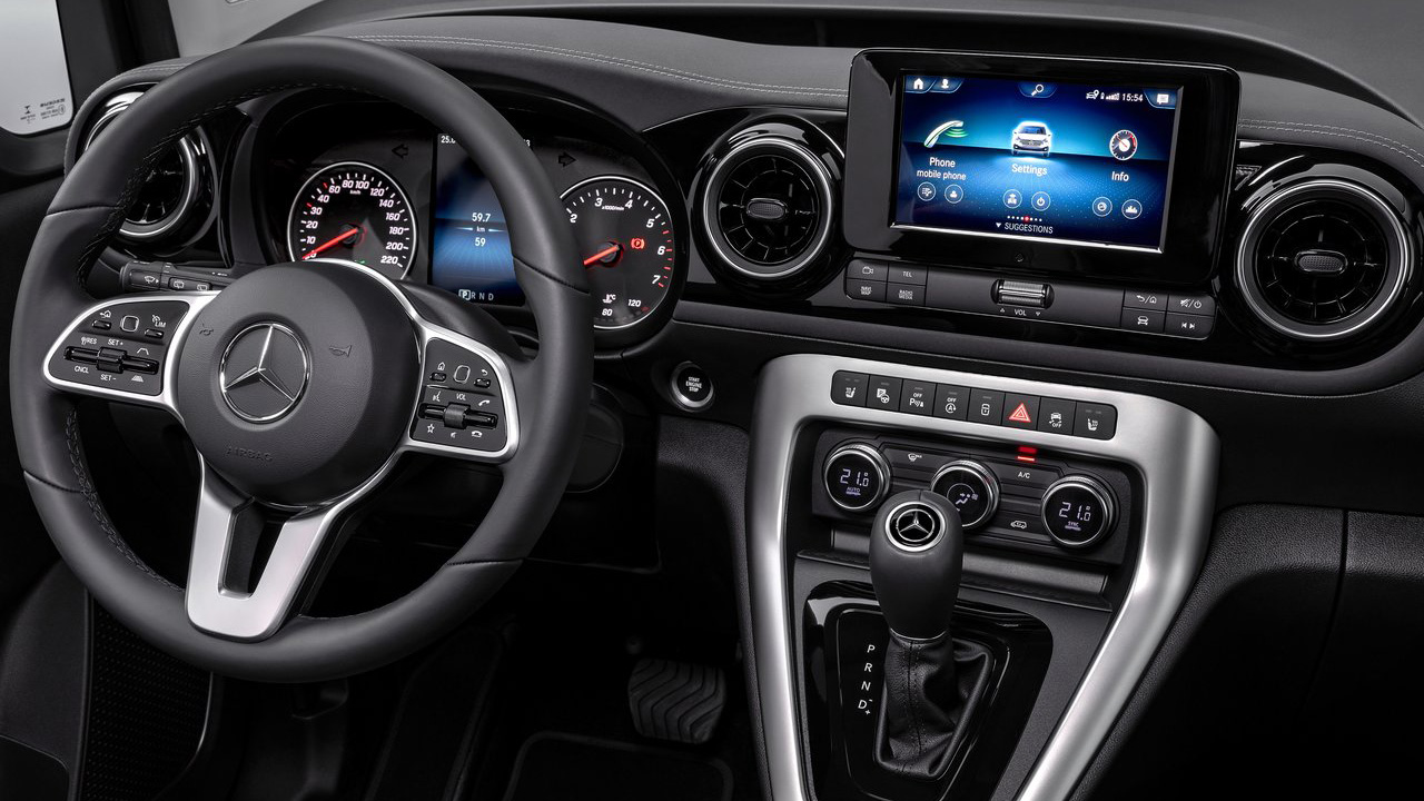 Περνώντας στο εσωτερικό, συναντάμε μία καμπίνα που δεν θυμίζει σε τίποτα τα Van όπως τα είχαμε στο μυαλό μας. Υπάρχουν ποιοτικά υλικά, σύστημα ενημέρωσης και ψυχαγωγίας 7 ιντσών, οθόνη σε ρόλο πίνακα οργάνων 5,5 ιντσών, αλλά και πέντε θέσεις για ισάριθμους επιβάτες, με την Mercedes να αναφέρει ότι αργότερα θα υπάρξει και μεγαλύτερη έκδοση με επτά θέσεις. Όσο για τις συρόμενες πόρτες, αυτές δημιουργούν ένα μεγάλο άνοιγμα 614 χλστ.