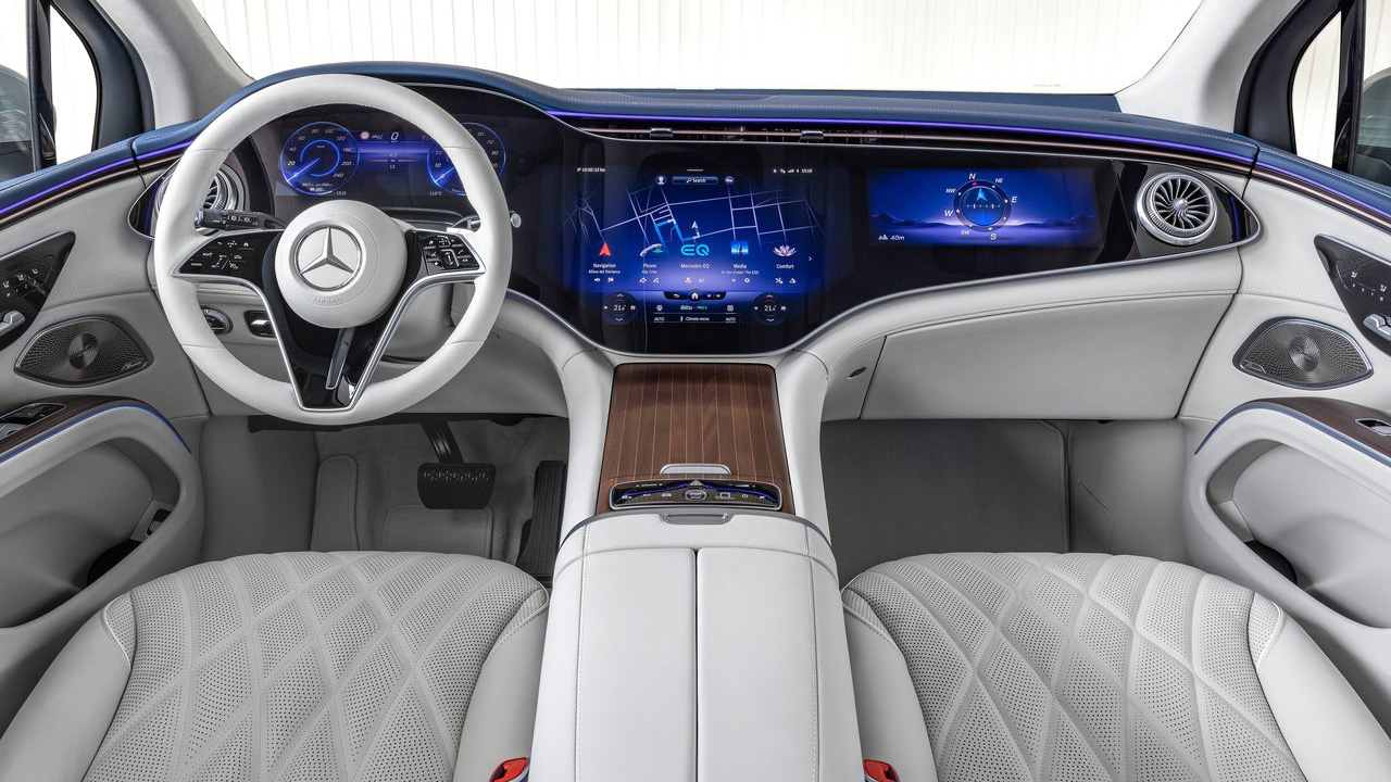 Περνώντας στο εσωτερικό, “πρωταγωνιστής” δεν είναι τίποτα άλλο πέρα από την τεράστια οθόνη MBUX Hyperscreen των 56 ιντσών. Όπως έχουμε ξανά δει στο παρελθόν, εκτείνεται σε όλο το ταμπλό του αυτοκινήτου. Στην ευρύχωρη καμπίνα χωρούν έως 7 επιβάτες και για τις αποσκευές είναι διαθέσιμος ένας όγκος 645 λτ. (στην πενταθέσια διάταξη).