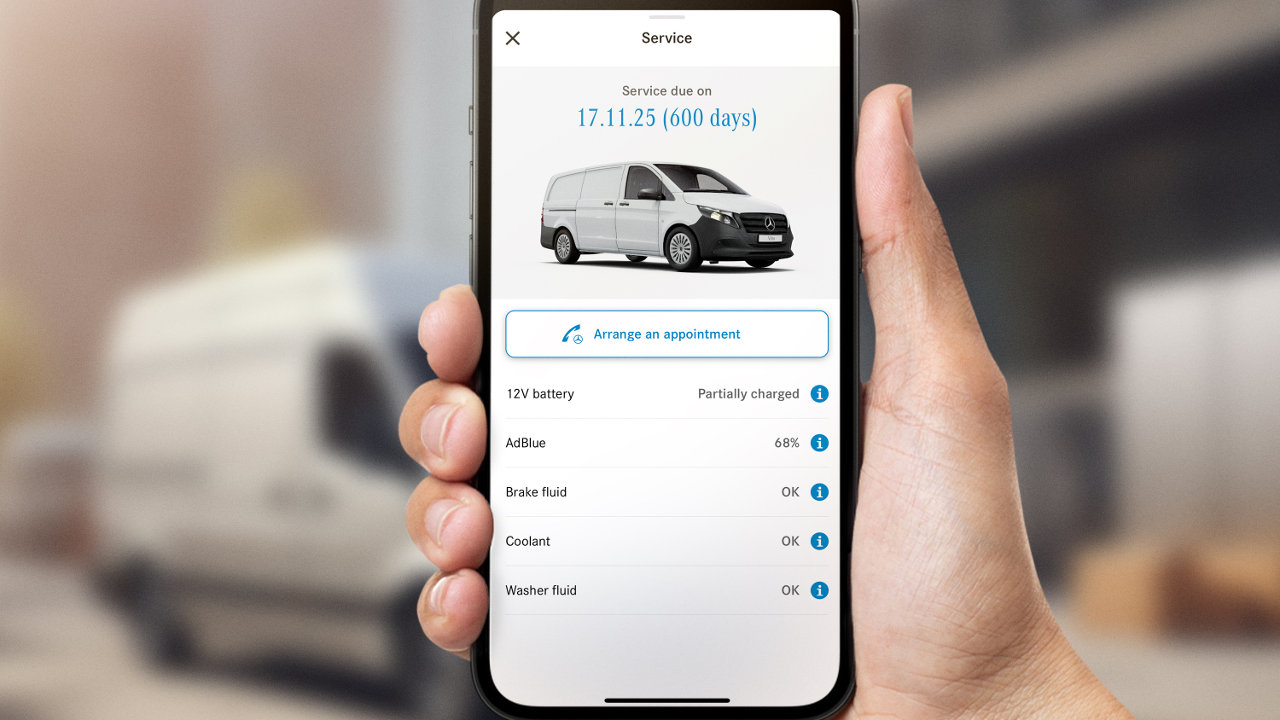 Το χαρτοφυλάκιο Ψηφιακών Πρόσθετων της Mercedes-Benz Vans καλύπτει ένα ευρύ φάσμα αναγκών και περιλαμβάνει κατηγορίες όπως υπηρεσίες Άνεσης, υπηρεσίες απομακρυσμένου χειρισμού, Πλοήγηση και Ηλεκτρική κινητικότητα. Ανάλογα με το μοντέλο, πολλά Ψηφιακά Πρόσθετα περιλαμβάνονται χωρίς επιπλέον κόστος ή για προκαθορισμένη διάρκεια έως και 36 μηνών με την αγορά του οχήματος. Το εύρος των διαθέσιμων λειτουργιών διαφέρει ανάλογα με τη σειρά μοντέλου, το έτος κατασκευής και τον εξοπλισμό.