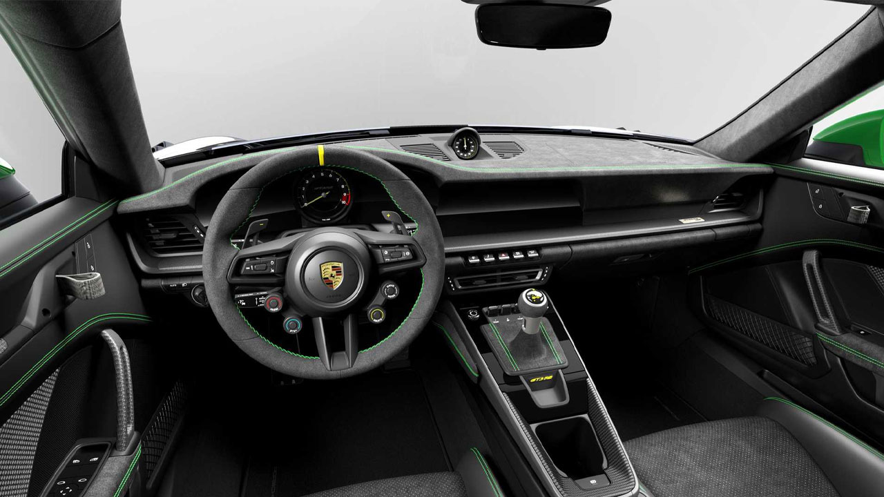 Στο εσωτερικό, το έντονο πράσινο χρώμα εξακολουθεί και έχει την τιμητική του, αυτή τη φορά στις ραφές των καθισμάτων, στο τιμόνι, στο ταμπλό, αλλά και στις επενδύσεις των θυρών! Ο χρονογράφος που συνοδεύει την έκδοση μιμείται το μοτίβο των τροχών μαγνησίου και υιοθετεί επίσης τις αποχρώσεις πράσινου λευκού στην κάσα και στο λουράκι.