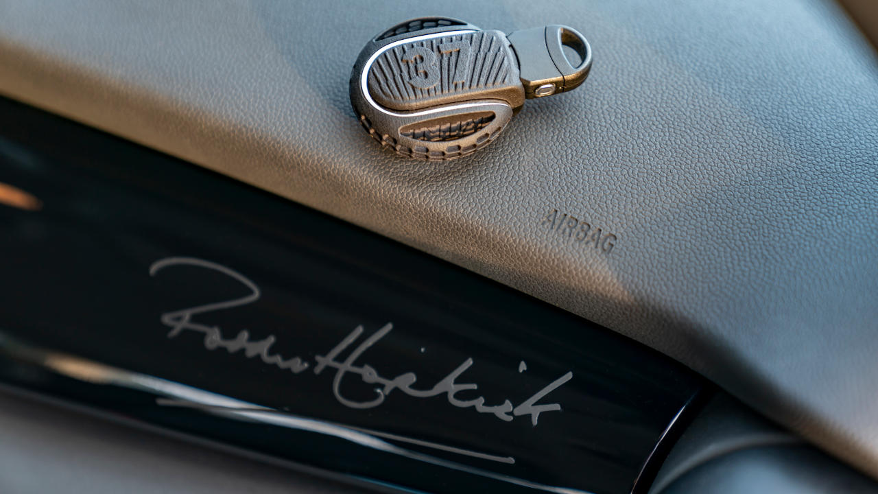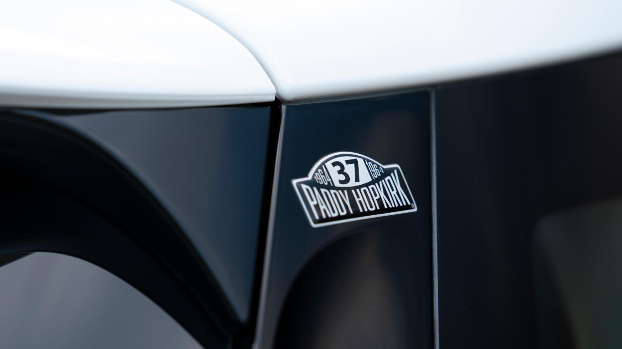 Το γαρνίρισμα ολοκληρώνεται με αυτοκόλλητα “Paddy Hopkirk Monte Carlo” αλλά και την υπογραφή του Βορειοϊρλανδού που φαίνεται στη λευκή ρίγα του καπό ενώ είναι παρούσα και στο πίσω μέρος. Τέλος η θρυλική πινακίδα κυκλοφορίας “33 EJB” του αυθυντικού αγωνιστικού Mini είναι επίσης παρούσα ως τρισδιάστατο γραφικό στο καπό. Η υπογραφή του Hopkirk δίνει το “παρών” και στο εσωτερικό σε διάφορα σημεία.