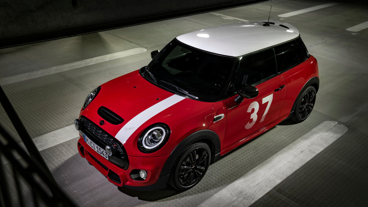 Το κόκκινο χρώμα, η λευκή οροφή, όπως και ο αριθμός “37” στις πόρτες, είναι εκείνα τα στοιχεία που αποτελούν άμεση αναφορά στο θρυλικό Morris Mini Cooper S του Hopkirk. Οι τροχοί είναι μαύροι και οι ενδιαφερόμενοι έχουν την επιλογή μεταξύ χυτών αλουμινένιων 17 ιντσών ή σφυρήλατων αλουμινίου 18 ιντσών John Cooper Works. Σε μαύρο χρώμα έχει βαφτεί και η γρίλια, όπως και οι εισαγωγές αέρα του προφυλακτήρα, ο αεραγωγός στο καπό, τα χερούλια στις πόρτες, τα πλαίσια των φωτιστικών σωμάτων αλλά και τα σήματα του αυτοκινήτου.