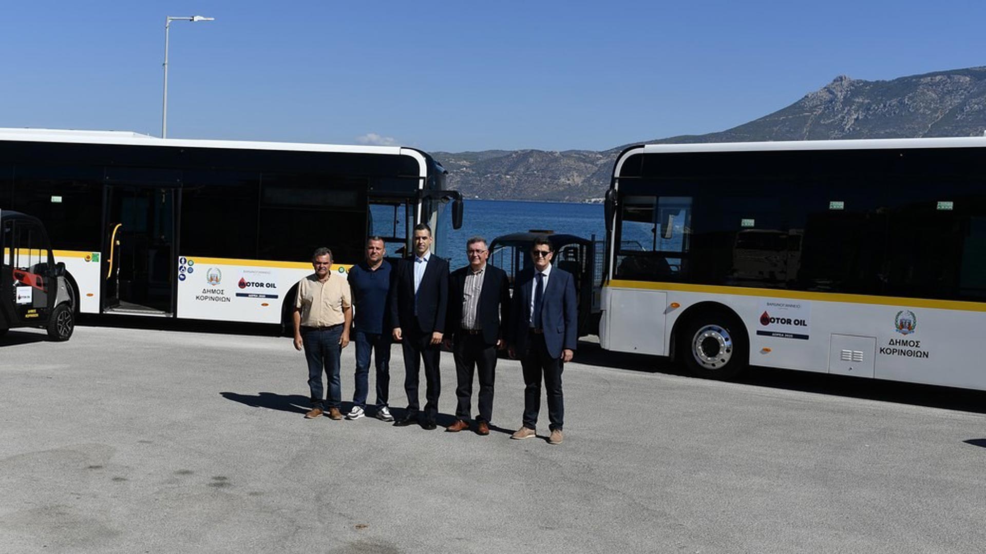Δύο αστικά ηλεκτρικά λεωφορεία και τρία ηλεκτρικά οχήματα παραδόθηκαν σήμερα, στον Δήμο Κορινθίων με δωρεά του Βαρδινογιάννειου Ιδρύματος και της Motor Oil.