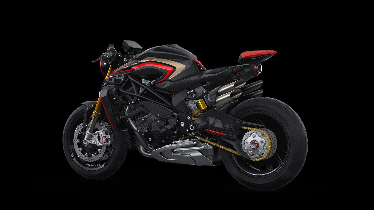 Με την έξτρα εξάτμιση η ισχύς ανεβαίνει στους 212 ίππους με την ηχητική υπόκρουση να ενισχύεται ανάλογα. Ο έντονα δραματικός τόνος είναι εμφανής στη σχεδίαση της ιταλικής δημιουργίας όπως και η εκτενής χρήση των ανθρακονημάτων, σε μια μοτοσυκλέτα με ακραία σχεδίαση ακόμη και για την κατηγορία των streetfighters που ανήκει, με επιρροές και από τις dragsters.
