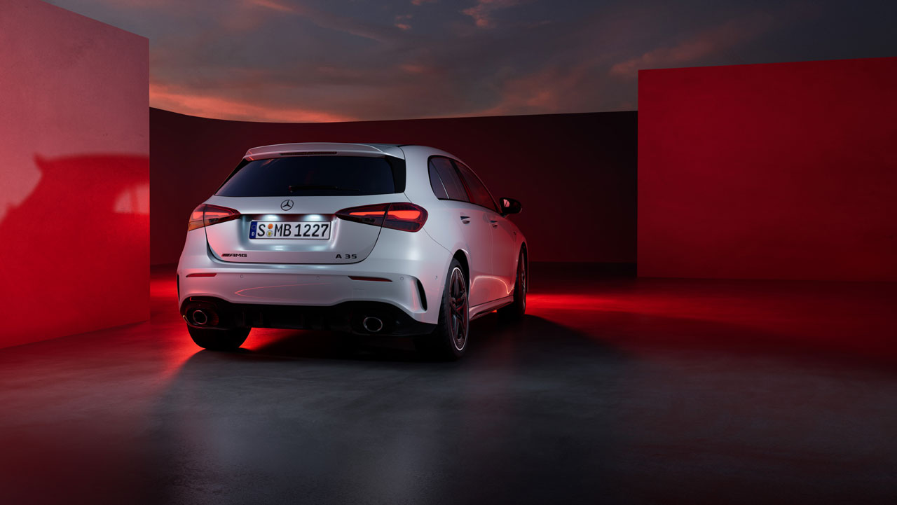 Η νέα Mercedes A-Class ξεχωρίζει στο μπροστινό τμήμα χάρη στο κεκλιμένο προς τα εμπρός καπό με τα δύο power domes και το επιβλητικό «ρύγχος καρχαρία», στη νέα επένδυση ψυγείου με μοτίβο αστεριών και στους επίπεδους προβολείς με τεχνολογία LED. Τον σπορ χαρακτήρα υπογραμμίζουν οι τροχοί σε τέσσερα επιπλέον σχέδια και διαστάσεις έως 19 ίντσες. Ο νέος πίσω διαχύτης και τα πίσω φώτα LED του βασικού εξοπλισμού δημιουργούν μια εντυπωσιακή και συναισθηματικά ελκυστική εμφάνιση μέρα και νύχτα. Το πολυτελές εξωτερικό συμπληρώνεται ιδανικά από μια πλούσια γκάμα χρωμάτων.