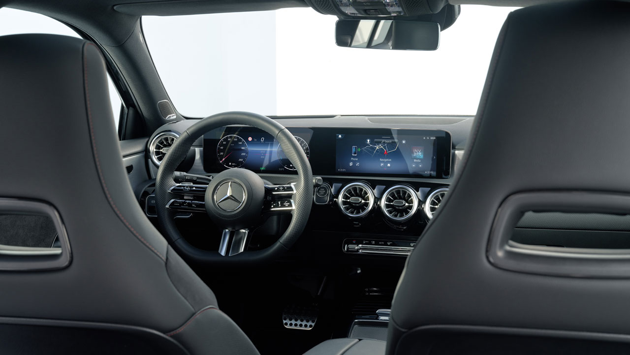 Όλα τα παραπάνω σε προϊδεάζουν για μια ανεπανάληπτη εμπειρία στο εσωτερικό του αυτοκινήτου, στο οποίο ανυπομονείς να μπεις. Το αυτοκίνητο αγκαλιάζει οδηγό και επιβάτες στη φιλόξενη καμπίνα του. Το σύστημα αυτόματου κλιματισμού Thermotronic, τα αναπαυτικά καθίσματα, τα κορυφαία υλικά και η ηχομόνωση κάνουν τα πάντα για να ταξιδέψουν όλοι ευχαριστημένοι. Η μοναδικότητα που προσφέρει ένα μοντέλο Mercedes αντανακλάται ακόμη και στη βασική έκδοση του εσωτερικού της νέας A-Class. Το αδιαμφισβήτητα κορυφαίο χαρακτηριστικό είναι η ανεξάρτητη διπλή οθόνη του βασικού εξοπλισμού, που βρίσκεται στο επίκεντρο με τη μεγάλη οθόνη οδηγού 10,25 ιντσών και τη δεύτερη μεγάλη οθόνη πολυμέσων 10,25 ιντσών. Η μοναδική εσωτερική αρχιτεκτονική, δημιουργεί μία πολυτελή ατμόσφαιρα. Οι τρεις στρογγυλοί αεραγωγοί που θυμίζουν αεριοστρόβιλους, χαρακτηριστικοί της Mercedes-Benz, παραπέμπουν στον κόσμο της αεροπλοΐας.