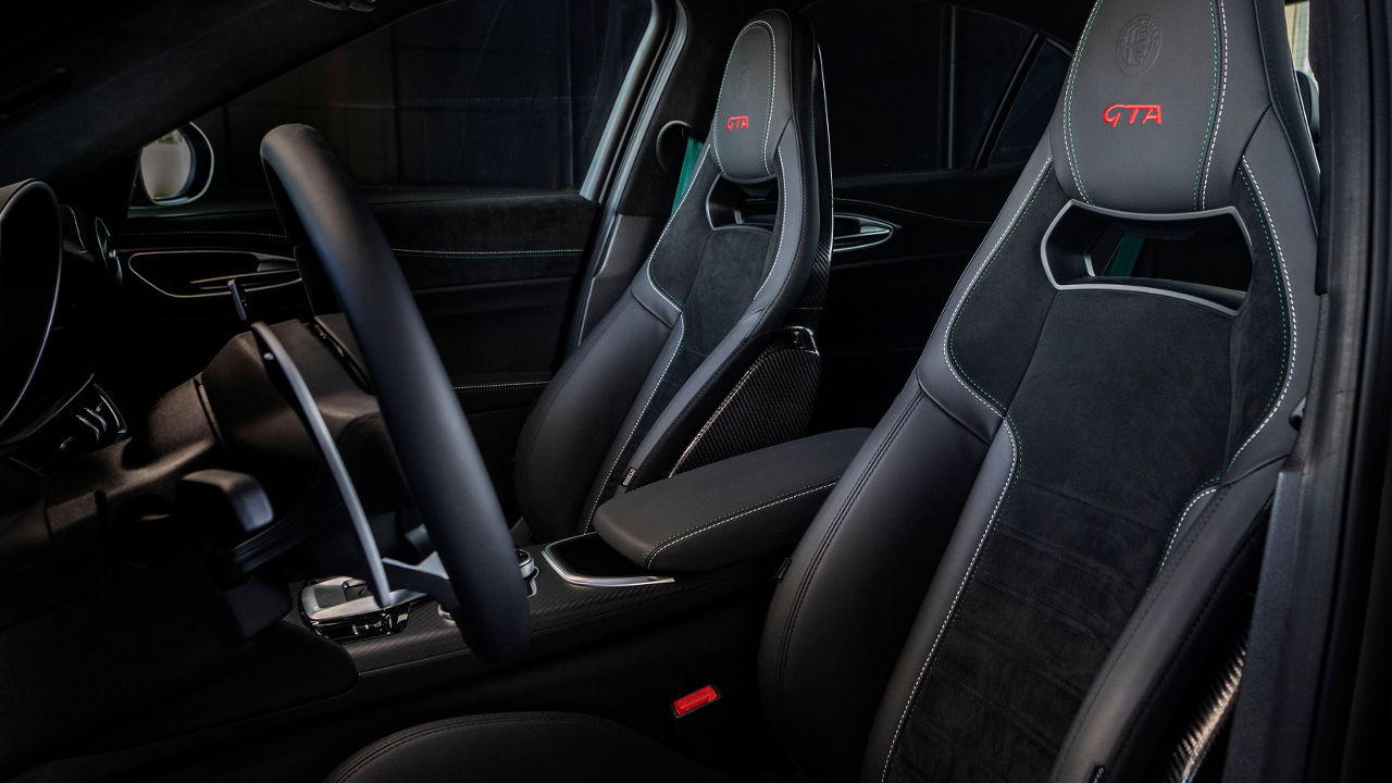 Στο εσωτερικό έχει γίνει επίσης προσπάθεια για σύνδεση της GTA με τους αγώνες. Τα καθίσματα, το ταμπλό, οι επενδύσεις των θυρών, αλλά και τις κολόνες να είναι επενδυμένες με Alcantara, σε ακόμα μεγαλύτερη κλίμακα στην έκδοση GTAm. Στην τελευταία τη θέση των πίσω καθισμάτων έχει πάρει ένας ειδικά διαμορφωμένος χώρος για τα κράνη του οδηγού και του συνοδηγού, αλλά και τον πυροσβεστήρα. Παράλληλα στην GTAm, η ύπαρξη του κλωβού ασφαλείας, των αγωνιστικών ζωνών ασφαλείας 6 σημείων, η απουσία επενδύσεων στις πίσω πόρτες και οι μπροστά πόρτες που ανοίγουν με το τράβηγμα ενός ιμάντα αντί των κλασσικών χειρολαβών, τονίζουν περαιτέρω τη σύνδεση με τον μηχανοκίνητο αθλητισμό.