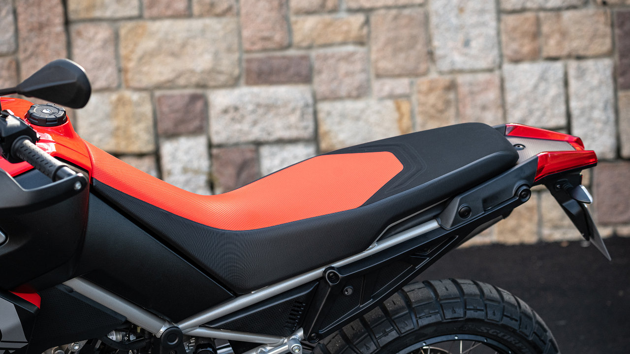 Για να συνδυαστεί η υψηλή διαδρομή του πίσω τροχού – απαραίτητη στην οδήγηση εκτός δρόμου – με την ευκολία τοποθέτησης της σέλας, η περιοχή του υποπλαισίου χαμήλωσε όσο το δυνατόν περισσότερο, επιτρέποντας έτσι τη σχεδίαση μιας λεπτής και απόλυτα λειτουργικής ουράς. Εξίσου μεγάλη προσοχή δόθηκε στις διαστάσεις για να επιτευχθεί μια εξαιρετικά μικρών διαστάσεων και λεπτού προφίλ μοτοσυκλέτα, ειδικά στην περιοχή όπου τα πόδια του αναβάτη έρχονται σε επαφή με το ρεζερβουάρ καυσίμου. Το ίδιο το ρεζερβουάρ, με την χωρητικότητα των 18 λίτρων, εξασφαλίζει αυτονομία 450 χλμ.