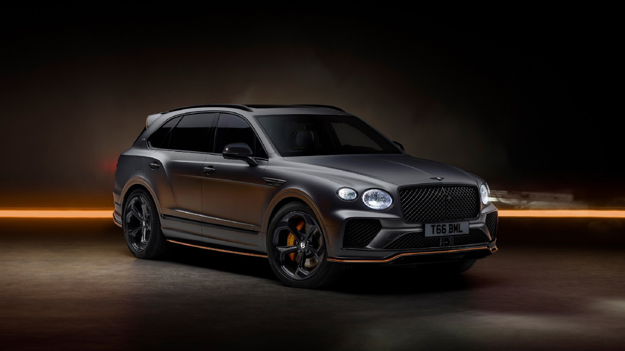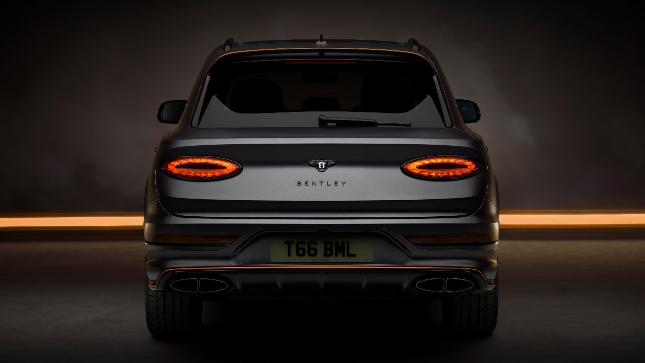 Όπως και στη βασική Bentayga S, όλα τα χρωμιωμένα εξωτερικά στοιχεία έχουν αντικατασταθεί από μαύρα γυαλιστερά. Στο κιτ αμαξώματος Styling Specification, τον έγχρωμο τόνο δίνουν λωρίδες που μοιάζουν με λέιζερ κάτω από τον εμπρός προφυλακτήρα, τα μαρσπιέ και το πάνω μέρος της πίσω αεροτομής. Οι δαγκάνες των φρένων είναι βαμμένες στο ίδιο χρώμα, προσθέτοντας μια έγχρωμη πινελιά πίσω από τις μαύρες ζάντες των 22 ιντσών.