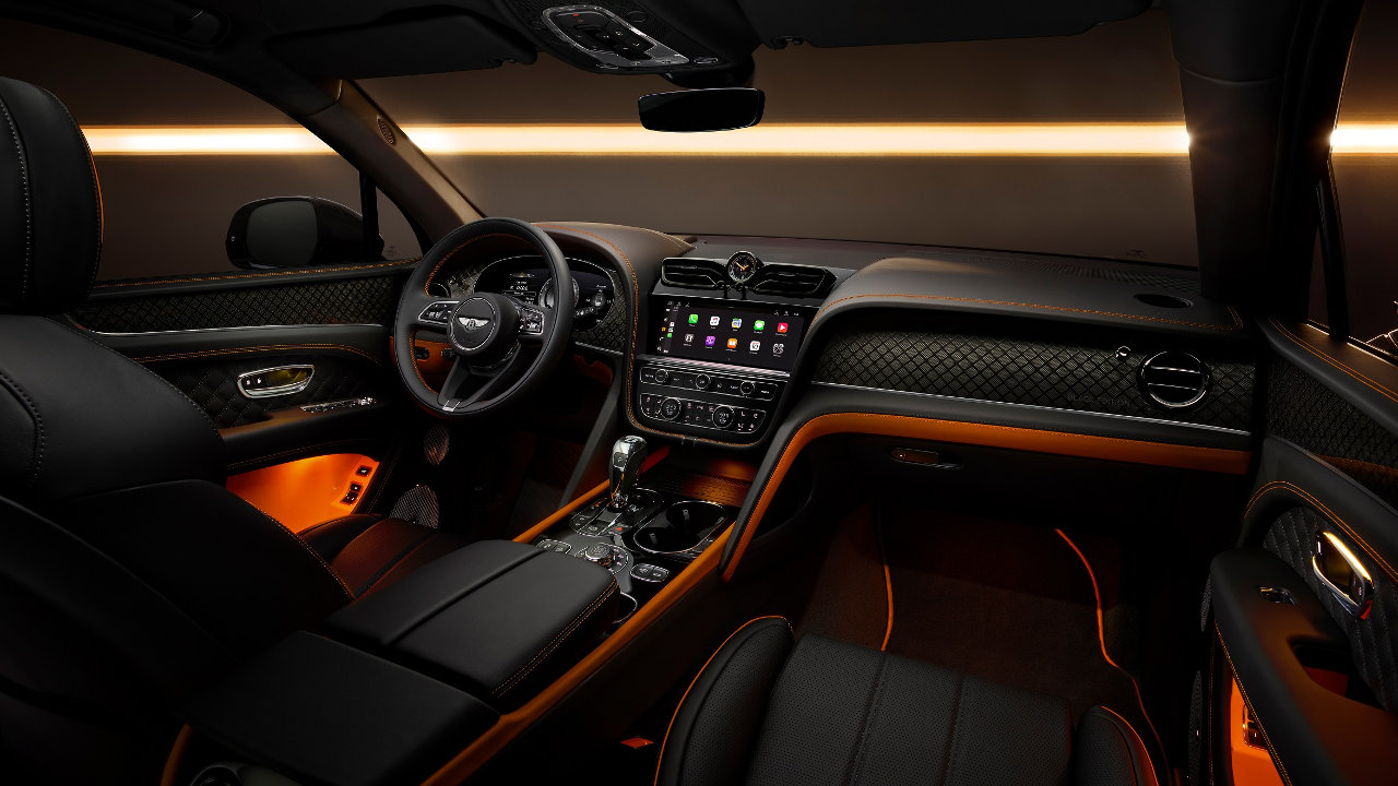 Για τη νέα S Black Edition, η σχεδιαστική ομάδα της Bentley εξέλιξε ένα μοναδικό χρωματικό συνδυασμό στο εσωτερικό της, δημιουργώντας αντίθεση μεταξύ του κορυφαίου δέρματος Beluga και των λεπτομερειών σε έντονο χρώμα. Τα εντυπωσιακά έντονα χρώματα του αμαξώματος έχουν υιοθετηθεί και στο χειροποίητο εσωτερικό της Bentayga, όπου οι ραφές και τα σιρίτια αντίθεσης αλλά και τα στοιχεία των δερμάτινων επενδύσεων σε έντονα χρώματα συνδυάζονται για να επιτύχουν το ίδιο εντυπωσιακό αποτέλεσμα. Επίσης σε κάθε κάθισμα έχει κεντηθεί ένα μαύρο λογότυπο “S”.