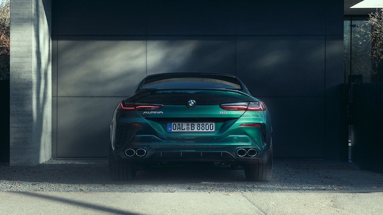 Η προσοχή στη λεπτομέρεια και οι διακριτικές σχεδιαστικές αλλαγές χαρακτήριζαν πάντα τις προτάσεις της Alpina και η B8 Grand Coupe δεν αποτελεί εξαίρεση. Χαρακτηριστικό παράδειγμα που αναφέρουν και οι άνθρωποι της διάσημης εταιρίας βελτιώσεων είναι ότι ακόμη και γράμματα που βλέπουμε στο κάτω μέρος του προφυλακτήρα πέρασαν από αεροδυναμικές δοκιμές… Ο εμπρός προφυλακτήρας έχει ελαφρώς μεγαλύτερους αεραγωγούς ενώ μια μικρή αεροτομή κοσμεί το πίσω μέρος, σε συνδυασμό με τις δύο διπλές απολήξεις της εξάτμισης.