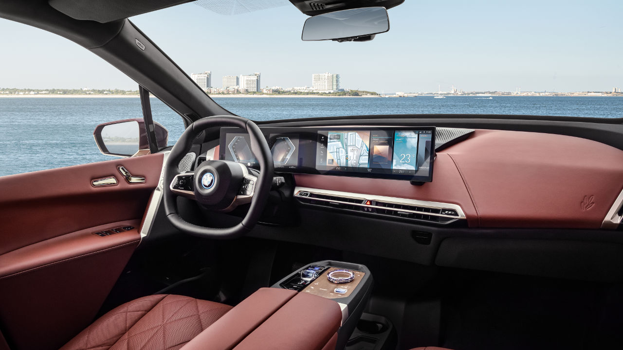 Οι Βαυαροί τονίζουν επανειλημμένα στη σχετική του ανακοίνωση το γεγονός πως η νέα BMW iX σχεδιάστηκε από μέσα προς τα έξω με το design της καμπίνας να έχει κυρίαρχο ρόλο στη λήψη των αποφάσεων που πήραν. Η έμπνευση προέρχεται από την αρχιτεκτονική με τους ανθρώπους της BMW να προσπαθούν να δώσουν μια οικεία εικόνα που θυμίζει σπίτι, ένα ιδιαίτερα μοντέρνο και μίνιμαλ σαλόνι θα προσθέταμε εμείς. Η λογική στη σxεδίαση δεν ξεφεύγει πολύ από εκείνη που έχουμε δει και στην i3 αποτελώντας τη λογική εξέλιξη της με το τελικό αποτέλεσμα να δίνει την αίσθηση ευρυχωρίας, εκμεταλλευόμενο και τις διαστάσεις της iX που δεν είναι πολύ μακριά από εκείνες των X5/X6. Φυσικά στο πάνω μέρος του ταμπλό κυριαρχούν οι μεγάλων διαστάσεων κυρτές οθόνες για τον πίνακα πληροφοριών και το σύστημα πολυμέσων αντίστοιχα με το εξαγωνικό τιμόνι να συμπληρώνει την εικόνα, όπως και οι υφασμάτινες επενδύσεις που δίνουν το “παρών” σχεδόν παντού.