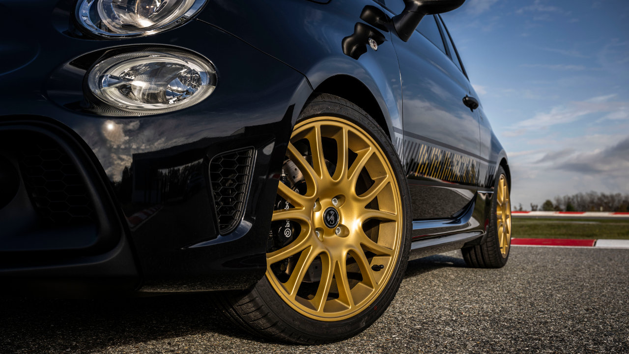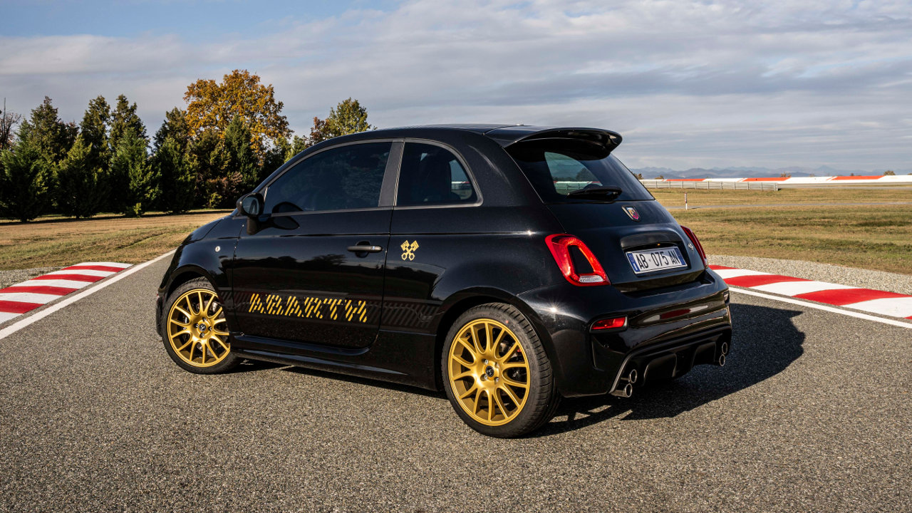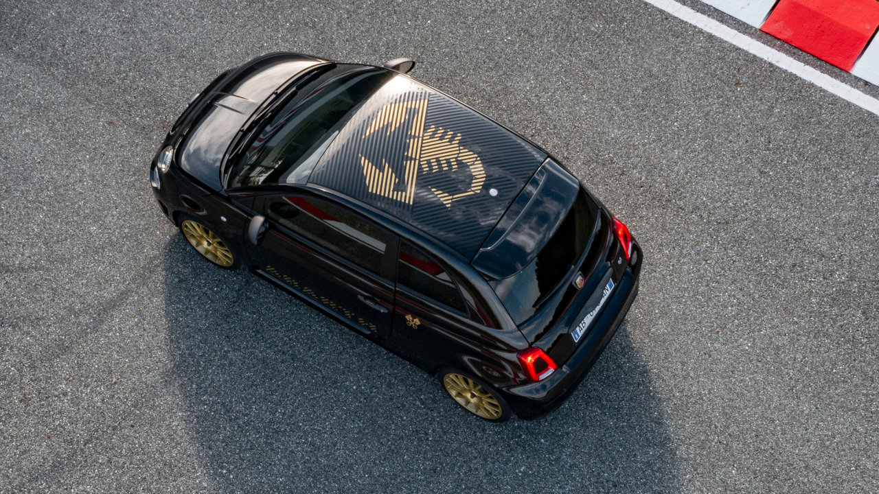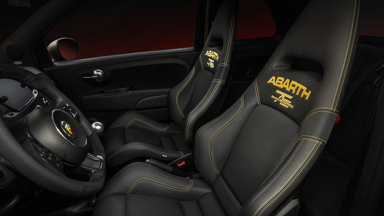 Από τις υπόλοιπες εκδόσεις η νέα επετειακή ξεχωρίζει και εξωτερικά με τον τεράστιο Σκορπιό στην οροφή να τοποθετείται εκεί για πρώτη φορά. Η Abarth επέλεξε το χρυσό χρώμα για τα γραφικά που στολίζουν το μικρό αμάξωμα, ενώ χρυσές είναι βαμμένες και οι ζάντες των 17 ιντσών.