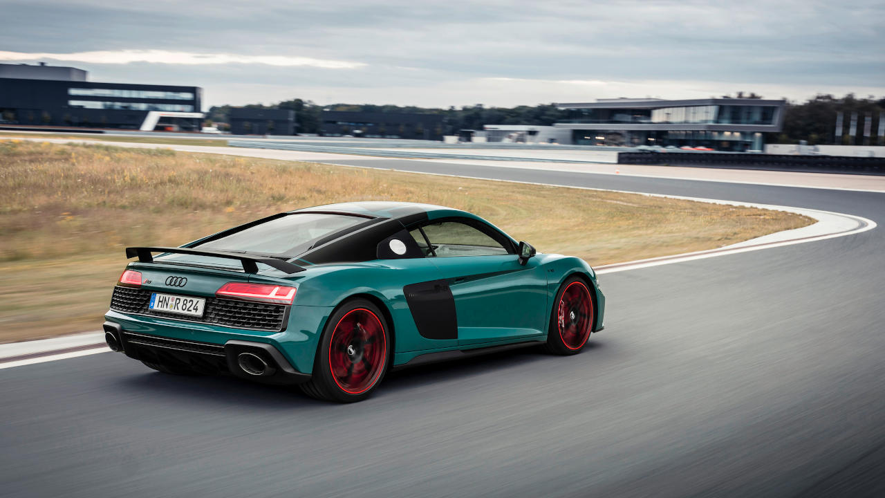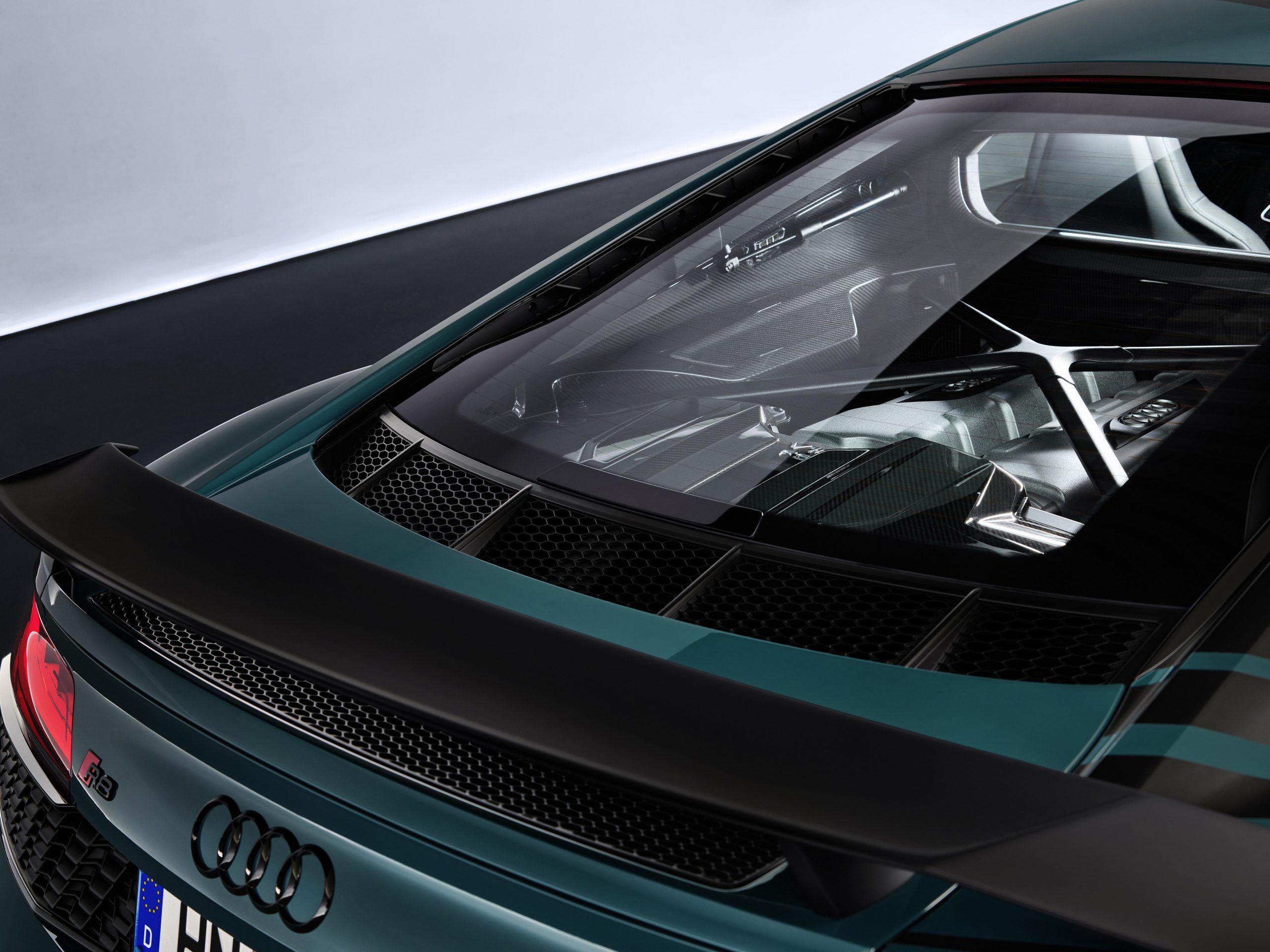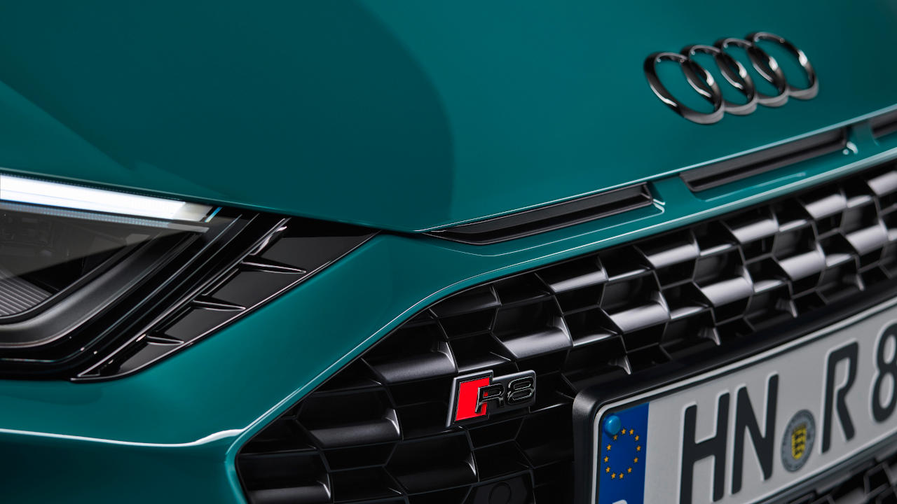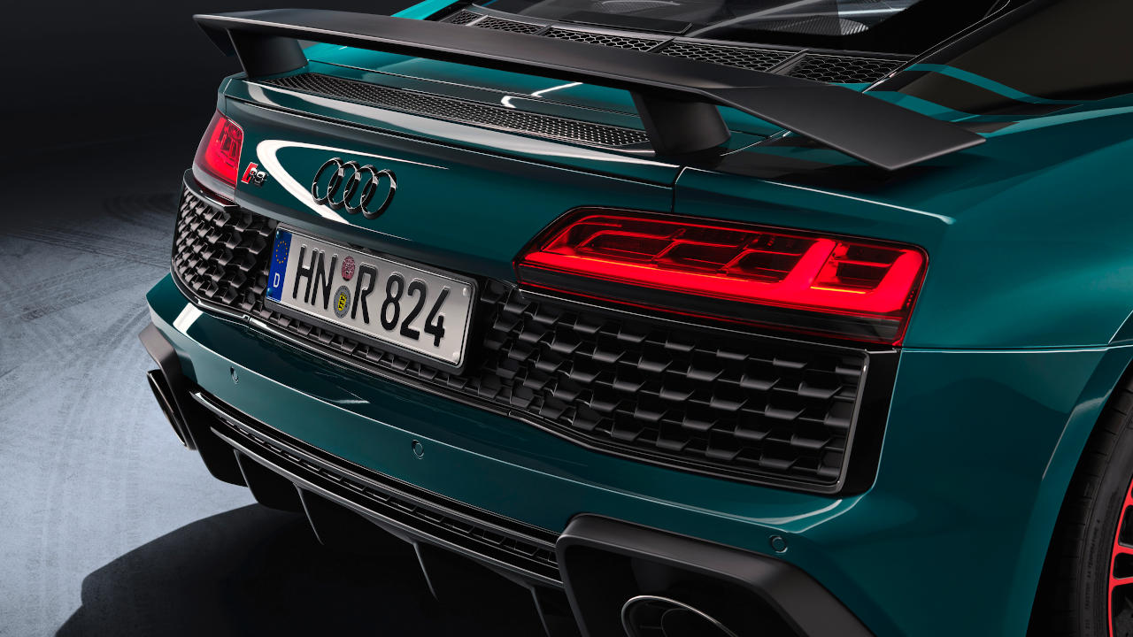 Το Audi R8 green hell μας δείχνει τους δεσμούς του με την Πράσινη Κόλαση του Nurburgring από το βαθύ πράσινο χρώμα του “Tioman”, με τους ενδιαφερόμενους να έχουν επίσης την επιλογή για λευκό, γκρι ή μαύρο χρώμα για το αμάξωμα. Το καπό, οι εμπρός κολόνες, η οροφή και το πίσω μέρος έχουν παράλληλα καλυφθεί με μαύρο ματ wrap που προσδίδει μια αγωνιστική όψη στο σπορ coupe της Audi.