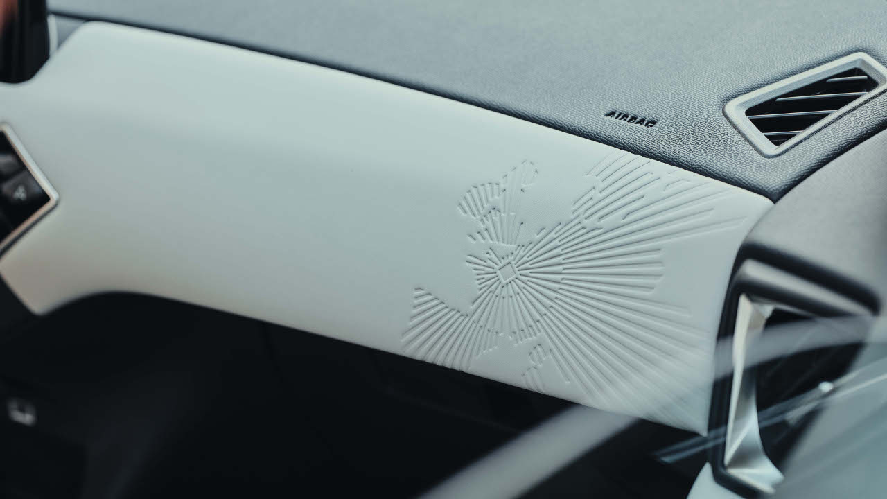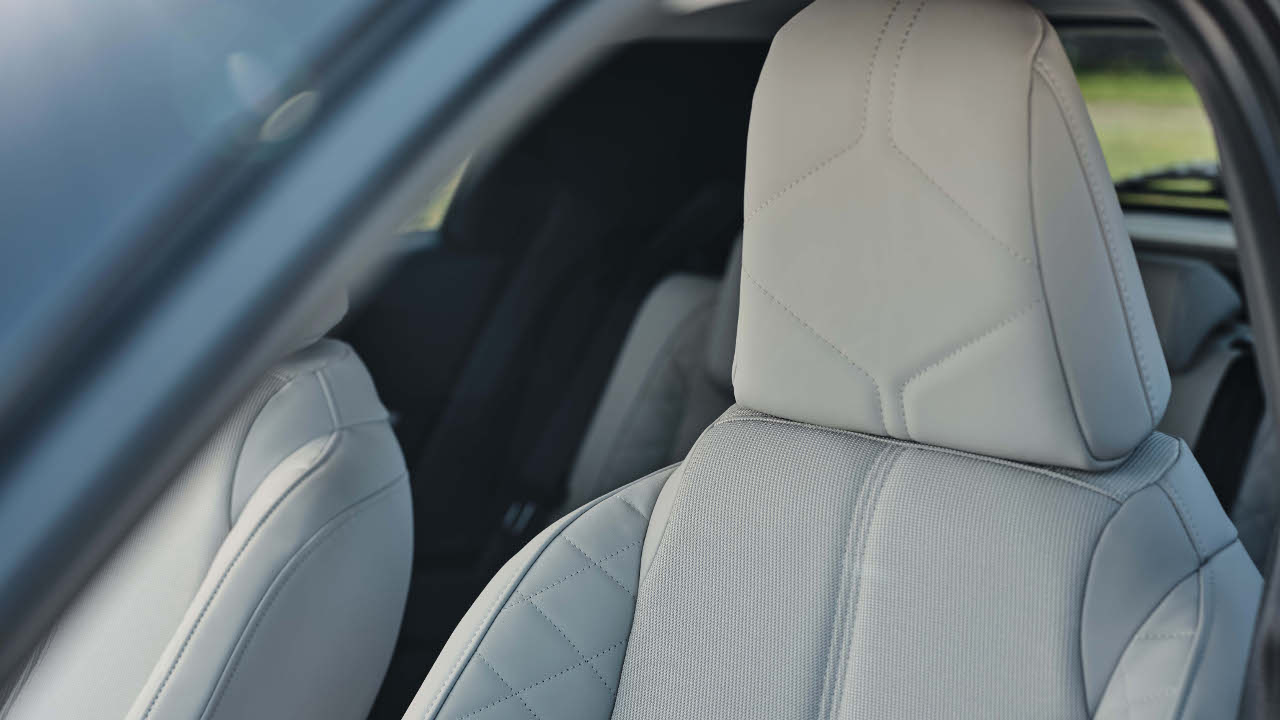 Τα καθίσματα έχουν φινίρισμα δύο υλικών, από ύφασμα Λουξεμβούργου σε συνδυασμό με δέρμα Nappa Pebble Grey. Προαιρετικά, τα καθίσματα μπορούν να είναι από δέρμα Basalt Black Grained.