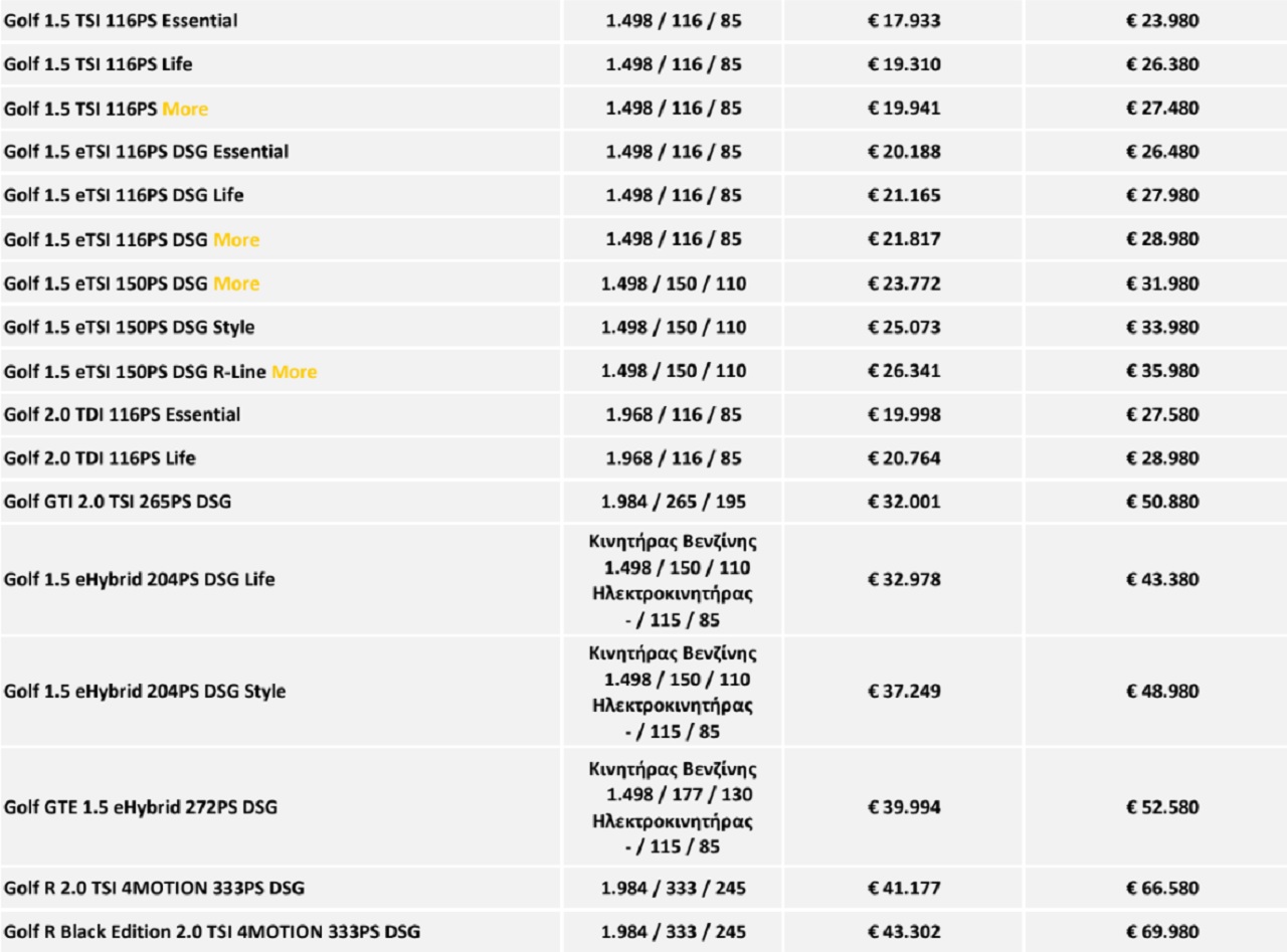 Ακολουθεί ο αναλυτικός τιμοκατάλογος για όλες τις εκδόσεις του μικρομεσαίου οικογενειακού μοντέλου της Volkswagen.