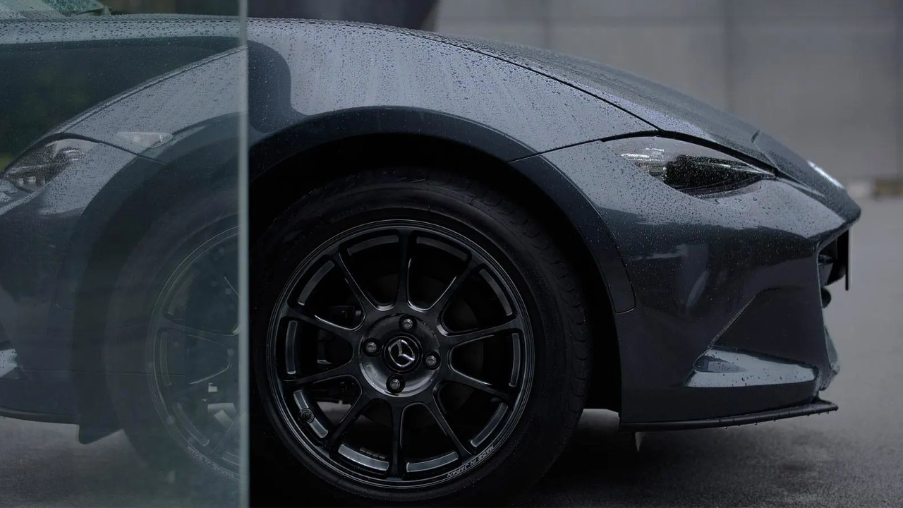 Ξεκινώντας από το αμάξωμα η R-Sport διαφέρει από τις υπόλοιπες χάρη στο γκρι μεταλλικό χρώμα της (Polymetal Grey Metallic το ονομάζουν στη Mazda) με τη μαλακή υφασμάτινη οροφή να έχει παρόμοια απόχρωση. Σε παρόμοιο χρώμα είναι και η γιαπωνέζικης κατασκευής αλουμινένιες ζάντες των 16 ιντσών (Rays ZE40), ενώ τα καλύμματα των καθρεπτών είναι βαμμένα σε μαύρο γυαλιστερό.