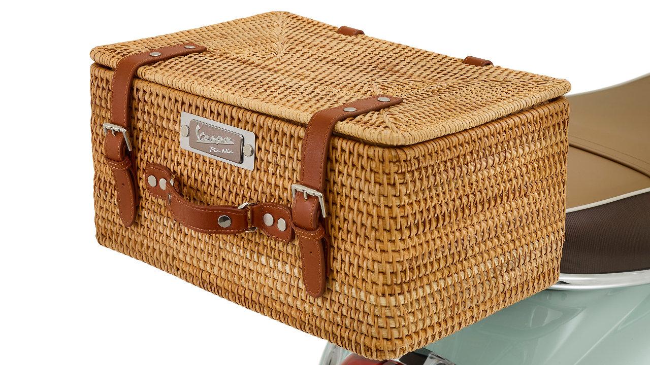 Τόσο το καλάθι όσο και η κουβέρτα, είναι διακοσμημένα με το λογότυπο Vespa Pic Nic, και μπορούν να μεταφερθούν άνετα στις εμπρός και πίσω σχάρες αποσκευών χρωμίου, που περιλαμβάνονται στον βασικό εξοπλισμό αυτής της ειδικής έκδοσης. Μάλιστα η κουβέρτα τυλίγεται χάρη στους δερμάτινους ιμάντες και μεταφέρεται εύκολα με μία πρακτική λαβή.