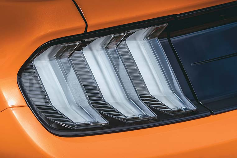 Περιγράφοντας τη νέα Mustang εξωτερικά, το εμπρός μέρος του καπό έχει χαμηλώσει για αεροδυναμικούς λόγους αλλά και λόγω της απαίτησης της Ευρωπαϊκής Ένωσης τα αυτοκίνητα να προκαλούν όσο το δυνατόν ελαφρύτερους τραυματισμούς στους πεζούς. Στο πίσω μέρος βρίσκουμε ανασχεδιασμένο προφυλακτήρα και διαχύτη που πλαισιώνεται από τέσσερις απολήξεις της εξάτμισης. Στο εσωτερικό, μαλακό υλικό έχει χρησιμοποιηθεί για την επένδυση της κεντρικής κονσόλας με εξωτερικές ραφές σε διαφορετικό χρώμα. Ο πίνακας οργάνων είναι ψηφιακός 12 ιντσών LCD με διαμόρφωση που αλλάζει ανάλογα με το προφίλ οδήγησης που έχει επιλεγεί, ενώ παράλληλα για πρώτη φορά διατίθενται δερμάτινα καθίσματα θερμαινόμενα και κλιματιζόμενα καθώς και θερμαινόμενο τιμόνι.