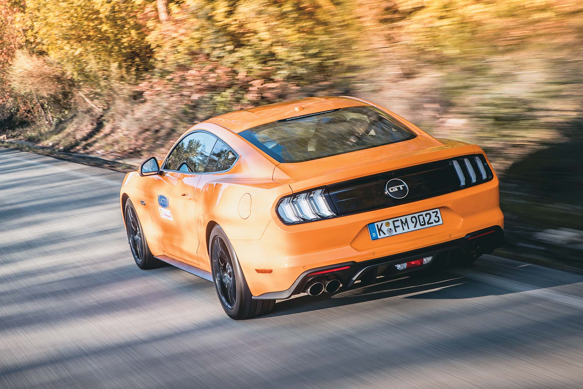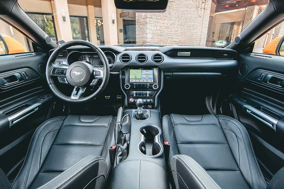 Ο οδηγός έχει να επιλέξει ανάμεσα σε πέντε προφίλ οδήγησης που επεμβαίνουν στον ηλεκτρονικό έλεγχο ευστάθειας, την απόκριση του γκαζιού, τον χρόνο αλλαγής ταχυτήτων στο αυτόματο κιβώτιο, στο σύστημα διεύθυνσης και στο Active Valve Performance Exhaust. Παράλληλα διαθέτει Drag Strip που βελτιώνει την επιτάχυνση σε αγώνες Dragster. Είτε με τον έναν είτε με τον άλλον κινητήρα, η νέα Mustang εντυπωσιάζει με τη συμπεριφορά της, που αναμφίβολα πιστώνεται στη Ford, η οποία έχει δημιουργήσει σχολή. Στρίβει υποδειγματικά χάρη στη νέα ανάρτηση που κρατά το αμάξωμα σε οριζόντια θέση όσο και αν τη «στραμπουλήξεις», κάτι που κάναμε αρκετές φορές στην ορεινή διαδρομή των Άλπεων. Αν αφαιρέσεις τα ηλεκτρονικά, παραμένει η γνωστή πύρινη Mustang με ατέλειωτες πλαγιολισθήσεις διαρκείας, ανάλογα με το πόσο βυθίζει ο οδηγός το γκάζι.