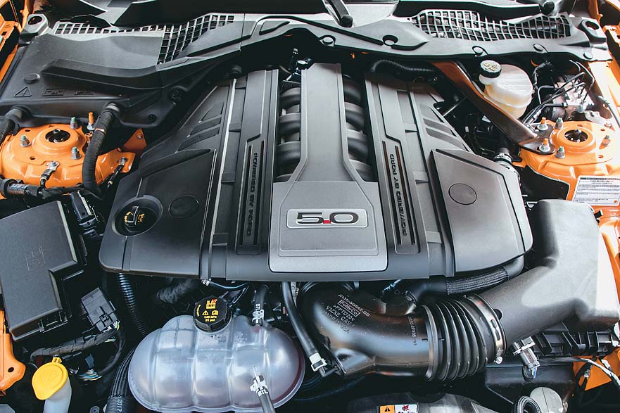 Παράλληλα διαθέτει Launch Control για καλύτερες εκκινήσεις, κλείδωμα των μπροστινών φρένων για να μπορούν να σπινάρουν οι πίσω τροχοί προθερμαίνοντας τα λάστιχα και πέντε προφίλ οδήγησης, με την κίνηση να περνά στους πίσω τροχούς μέσα από μηχανικό κιβώτιο έξι σχέσεων ή 10τάχυτο αυτόματο. Δυο κινητήρες είναι διαθέσιμοι: 2.3 Ecoboost απόδοσης 290 ίππων και 5λιτρος V8 450 ίππων.