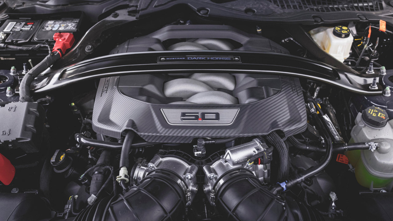 Η Dark Horse τροφοδοτείται από μια ισχυρότερη έκδοση του νέου V8 κινητήρα, που φέρει διαφορετικούς εκκεντροφόρους και μοναδικές ρυθμίσεις. Ο σχεδιασμός του συστήματος εισαγωγής αέρα με δύο πεταλούδες γκαζιού επιτρέπει διπλάσιες ποσότητες αέρα να εισέρχονται στον κινητήρα, εξασφαλίζοντας μέγιστη απόδοση 454 ίππων και ροπή 540 Nm. Στάνταρ είναι ένα αποκλειστικό 6άρι χειροκίνητο κιβώτιο της TREMEC με επιλογέα από τιτάνιο 3D εκτύπωσης, ενώ εναλλακτικά προσφέρεται το 10τάχυτο αυτόματο κιβώτιο, με χειριστήρια αλλαγής στο τιμόνι.