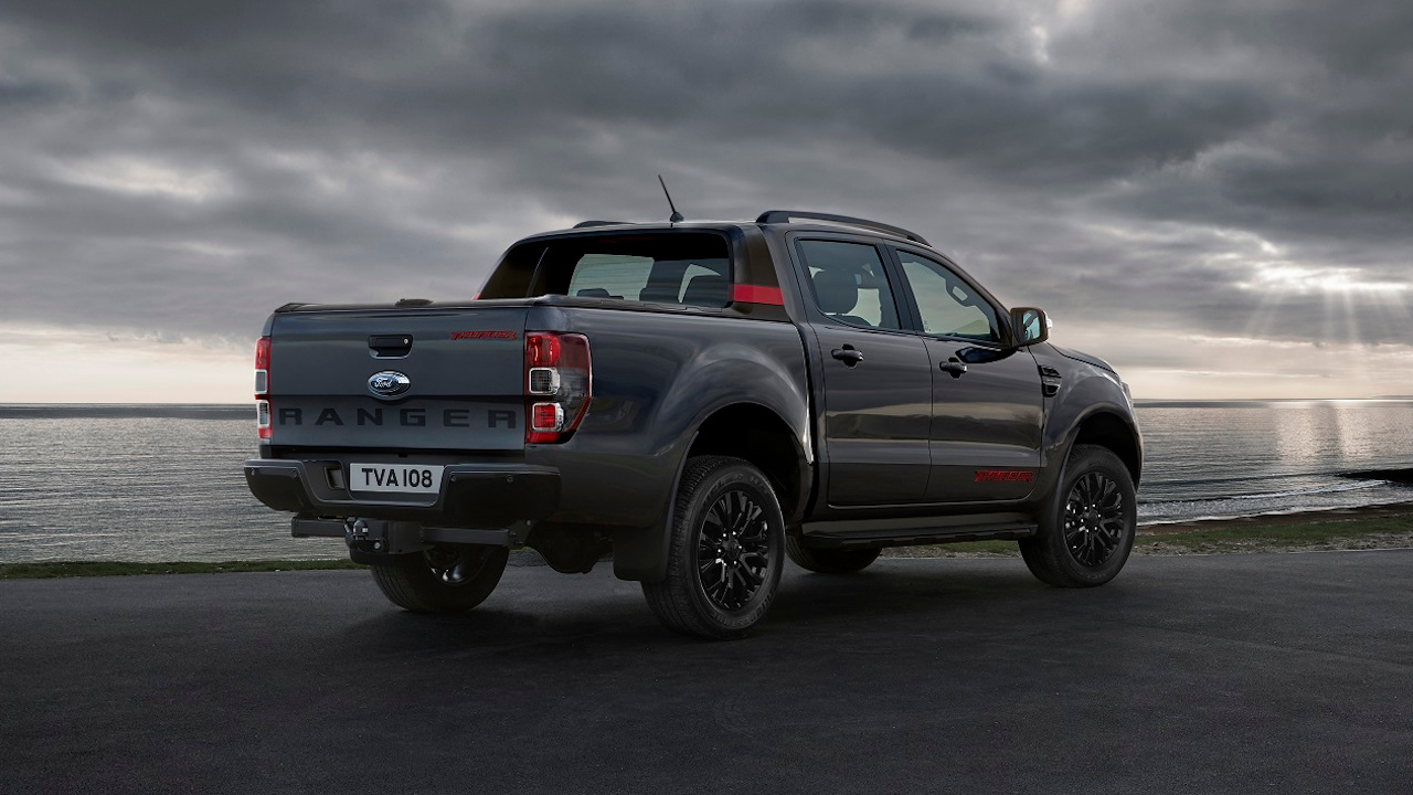 Η νέα ειδική έκδοση Thunder ξεχωρίζει αρχικά από τη σκούρα γκρι βαφή του αμαξώματος (Sea Grey την ονομάζουν στη Ford) και τις αποκλειστικές σύμφωνα με την εταιρία ζάντες των 18 ιντσών σε μαύρο. Στο ίδιο χρώμα είναι είναι βαμμένη και η γρίλια, ο πίσω προφυλακτήρας, οι προστατευτικές πλάκες, τα πλαίσια στους προβολείς ομίχλεις, τα χερούλια αλλά και η “γέφυρα” της καρότσας.