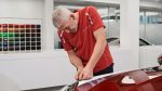 Η πρώτη ειδική έκδοση της νέας 911 Targa ξεχωρίζει για το εντυπωσιακό μεταλλικό “κερασί” χρώμα της το οποίο συνδυάζεται με χρυσές λεπτομέρειες, στο πνεύμα της 10ετίας του ’50. Οι λευκές ρίγες που διατρέχουν τα εμπρός φτερά και τις πόρτες, το όνομα της Porsche εκεί, επίσης με μεγάλα λευκά γράμματα, τα χρυσά σήματα εμπρός και πίσω αλλά και το “number plate” δίνουν στη νέα 911 Targa μια ρετρό αγωνιστική εσάνς, ιδιαίτερα ελκυστική στο μάτι.