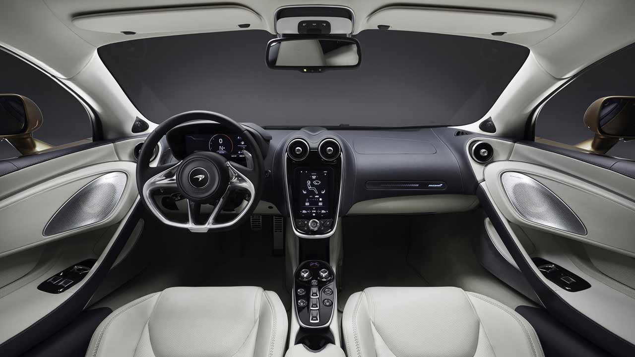 Αφήνοντας τις επιδόσεις, περνάμε στο εσωτερικό, το οποίο σε ένα μοντέλο GT σίγουρα παίζει σημαντικό ρόλο, καθώς οφείλει να είναι ποιοτικό και καλοεξοπλισμένο. Και σύμφωνα με τη McLaren το εσωτερικό της GT αποτελεί την επιτομή της ποιότητας και της άνεσης, έχει κορυφαία ηχομόνωση και πλούσιο εξοπλισμό. Και το πιο παράδοξο από όλα είναι ο χώρος για αποσκευές… Ναι είναι παράξενο να μιλάμε για χώρα αποσκευών σε μία McLaren αλλά να που έγινε και αυτό και μάλιστα με τρόπο εντυπωσιακό, καθώς η GT διαθέτει χώρο αποσκευών που θα ζήλευαν ακόμη και… SUV. Και αυτό γιατί αυτός είναι συνολικά στα 570 λίτρα. Και λέμε συνολικά γιατί έχει 420 λίτρα διαθέσιμα στο πίσω μέρος της και άλλα 150 λίτρα στο εμπρός.