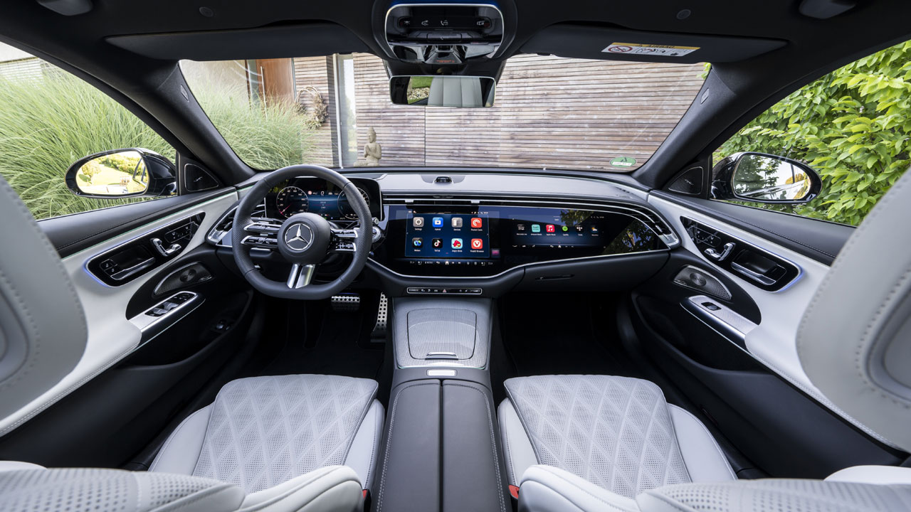 πό την πλευρά του οδηγού, προκειμένου να μην του αποσπά την προσοχή. Επιπλέον, στο σύστημα ενημέρωσης και ψυχαγωγίας της έχει ενσωματωθεί το Tik Tok, αλλά και το δημοφιλές παιχνίδι Angry Bird, τα οποία είναι διαθέσιμα μόνο όταν η E-Class είναι ακινητοποιημένη. Επιπλέον, ένα από τα νέα, εντυπωσιακά στοιχεία που συναντάμε είναι η selfie κάμερα, η οποία επιτρέπει στους επιβάτες να μετατρέπουν την καμπίνα σε γραφείο, κάνοντας τηλεδιασκέψεις μέσω Webex ή Zoom. Όσον αφορά τον προσφερόμενο χώρο, για τους επιβάτες έχει γενναιόδωρες διαστάσεις, κάτι που οφείλεται και στο μακρύτερο κατά δύο εκατοστά μεταξόνιο (2.961 χιλιοστά) σε σύγκριση με την προηγούμενη σειρά. Από την άλλη ο χώρος αποσκευών είναι στα 540 λίτρα.