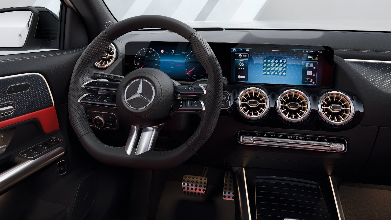 Παράλληλα, η GLA φέρει στάνταρ και τη νέα γενιά του συστήματος πολυμέσων και επικοινωνίας MBUX με τα νέα γραφικά, σε συνδυασμό με τις τρεις λειτουργίες Navigation, Assistance και Services καθώς και τους 10 χρωματικούς συνδυασμούς του Ambient Light για περαιτέρω εξατομίκευση. Όλες οι προηγούμενες λειτουργίες όπως Media, Phone, Vehicle κ.λπ. εξακολουθούν να είναι διαθέσιμες. Ο χειρισμός τους γίνεται εύκολα μέσω της οθόνης αφής ή των πλήκτρων αφής στο τιμόνι.