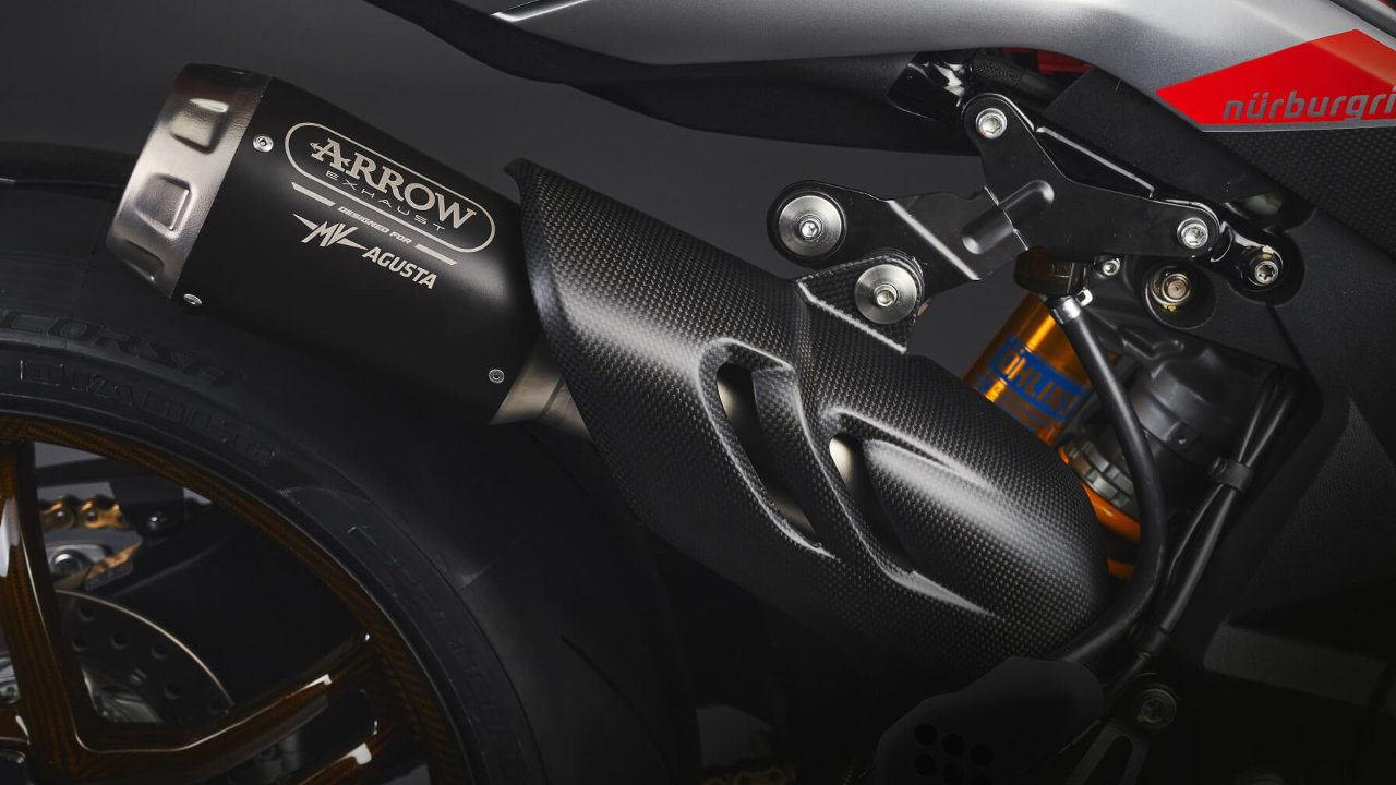 Από carbon είναι επίσης το φιλτροκούτι, το μικρό πίσω σπόιλερ και η μάσκα του προβολέα, ενώ γι’ αυτούς που θέλουν να μειώσουν ακόμη περισσότερο το βάρος των 183 κιλών υπάρχει διαθέσιμη και εξάτμιση κατασκευασμένη από τιτάνιο και ανθρακονήματα, ελαφρύτερη κατά 6 περίπου κιλά. Η εξάτμιση της Arrow συνοδεύεται από νέα χαρτογράφηση για το μοτέρ με αποτέλεσμα η απόδοση του μοτέρ να ανεβαίνει στις 215 ίππους, ενώ η ροπή παραμένει στα 116,5 Nm.