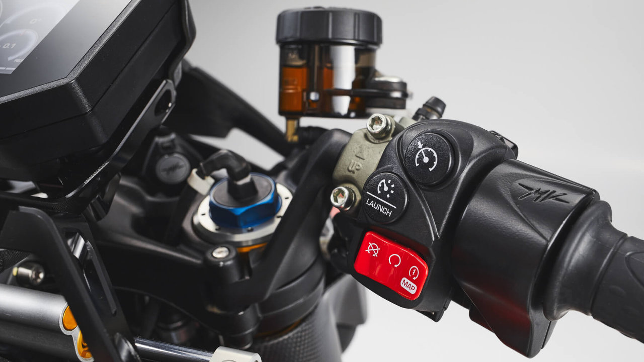 Τα φρένα προέρχονται από την Brembo με δίσκους διαμέτρου 320 χλστ. και ακτινικά τοποθετημένες 4πίστονες δαγκάνες Stylema εμπρός, ενώ το “παρών” δίνει και ένα πλήρες ηλεκτρονικό οπλοστάσιο με προγράμματα οδήγησης που παραμετροποιούν εύκολα και γρήγορα την απόδοση του μοτέρ αλλά και εκείνη των αναρτήσεων και ηλεκτρονικών συστημάτων υποβοήθησης.