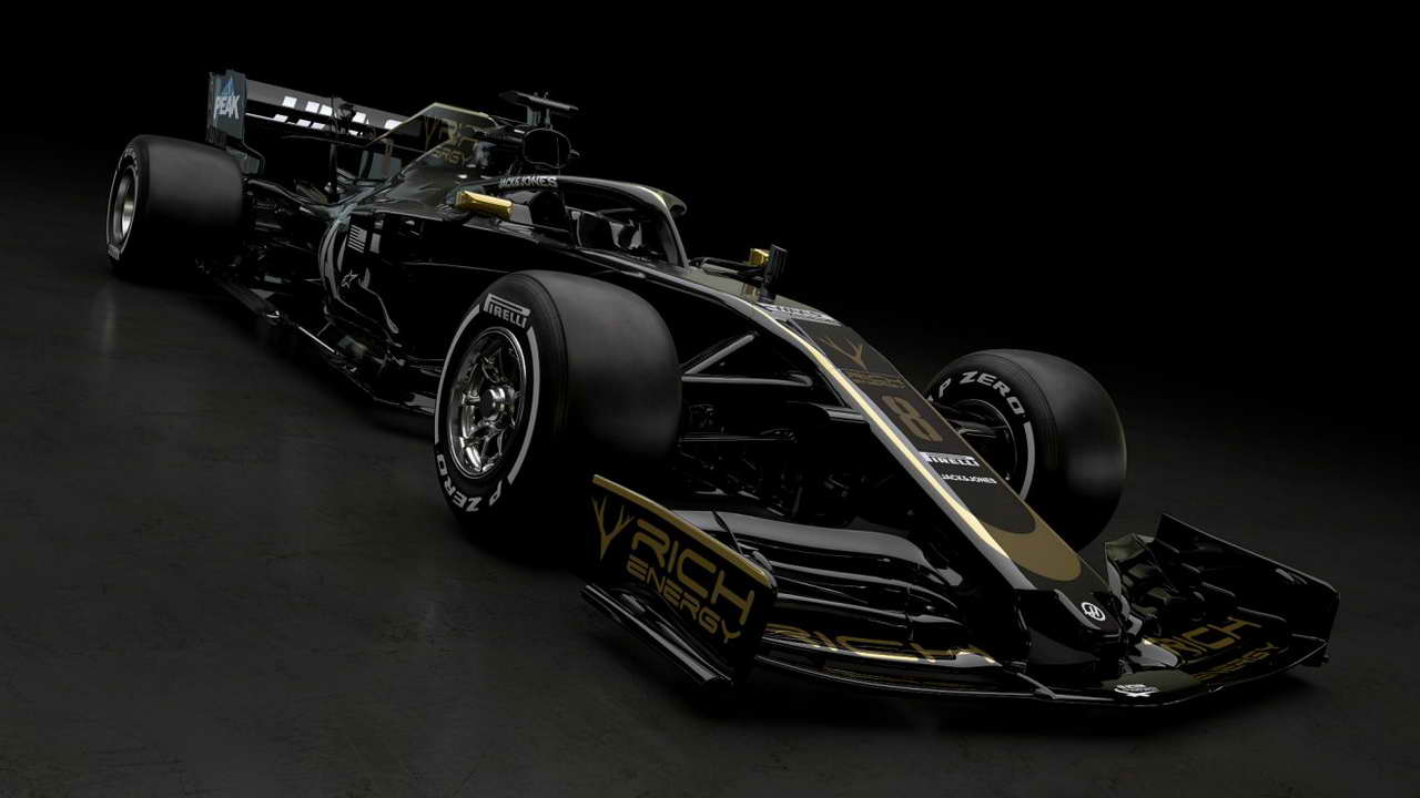 Σε εκδήλωση που πραγματοποιήθηκε στο Royal Automobile Club του Λονδίνου, οι πιλότοι της ομάδας για το 2019, Romain Grosjean και Kevin Magnussen, παρουσίασαν το νέο, μαύρο και χρυσό, χρωματισμό της Haas, που είναι ίδιος με εκείνον της Rich Energy.