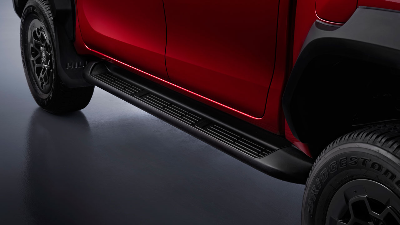 Ξεκινάμε από την αύξηση του πλάτους, με τον εμπρός άξονα να είναι διευρυμένος κατά 140 χλστ. και τον πίσω κατά 155 χλστ. συγκριτικά με την “στάνταρ” έκδοση. Όπως αναφέρει η Toyota, κάτι τέτοιο δημιουργεί καλύτερο χειρισμό στις πλέον ακραίες συνθήκες. Αλλαγές υπάρχουν και στην εμφάνιση, με μαύρες “πινελιές” σε ζάντες, καθρέφτες και σκαλοπάτι, ενώ δεν απουσιάζουν και τα σχετικά σηματάκια “GR Sport” εμπρός και πίσω.