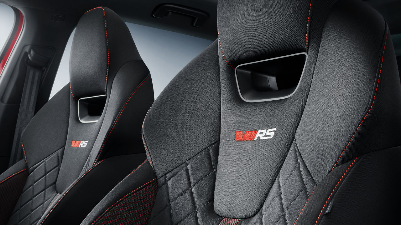 Το σπορ τιμόνι των τριών ακτίνων με το σήμα της έκδοσης, ο ψηφιακός πίνακας πληροφοριών για τον οδηγό με αποκλειστικά για την έκδοση RS γραφικά και διαγώνιο 10,25 ίντσες, οι κόκκινες ή ασημί ραφές που κάνουν την εμφάνιση τους στο ταμπλό, στις επενδύσεις των σπορ καθισμάτων αλλά και τις πόρτες, ο ατμοσφαιρικός φωτισμός και το μοναδικό “καλωσόρισμα” από την 10ιντση οθόνη αφής του συστήματος πολυμέσων είναι τα κύρια γνωρίσματα του εσωτερικού των RS. Φυσικά λεπτομέρειες σε αλουμίνιο, όπως τα πεντάλ, δεν θα μπορούσαν να λείπουν. Να σημειωθεί επίσης ότι στο ταμπλό καλύπτεται εν μέρη από Alcantara, ενώ προαιρετικά το ίδιο μπορεί να γίνει και για τα καθίσματα σε συνδυασμό με δέρμα αλλά και τεχνητό δέρμα.