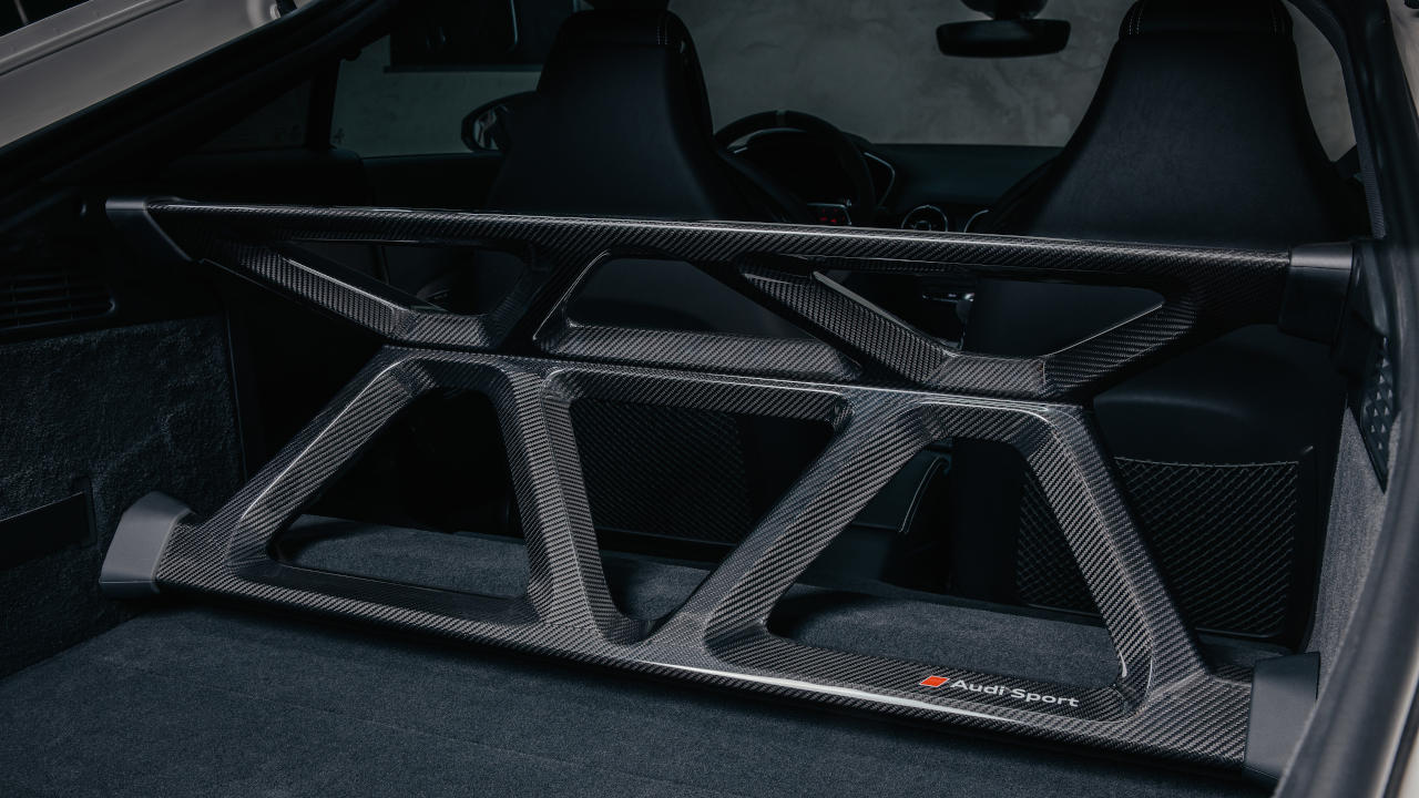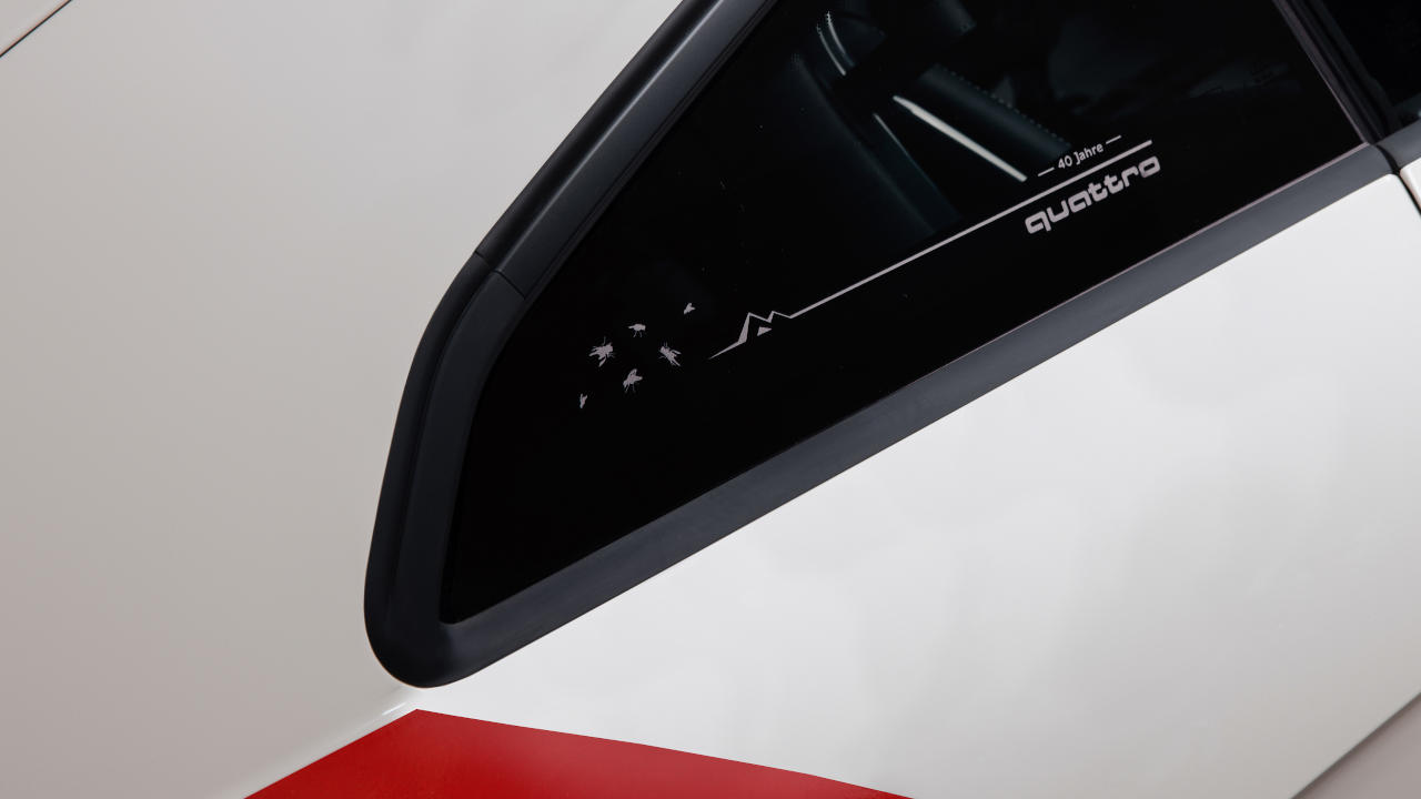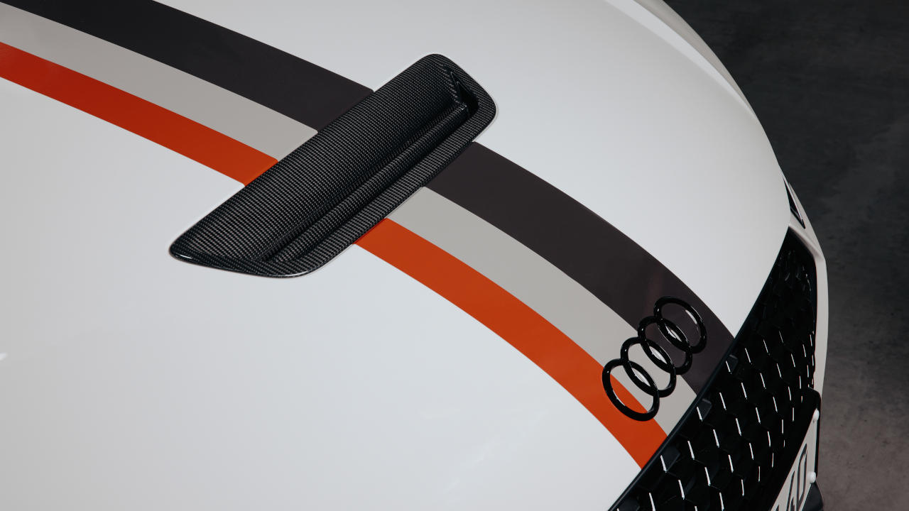 Πιο λαχταριστές ίσως λεπτομέρειες είναι τα γραφικά και τα αυτοκόλλητα που ντύνουν το TT RS 40 Jahre quattro με τη τριχρωμία να αντλεί την έμπνευση της από το Audi Sport quattro S1 που κέρδισε στη διάσημη αμερικάνικη ανάβαση Pikes Peak με οδηγό τον Walter Röhrl. Πέρα από την τριχρωμία και τις… μύγες στα μικρά πίσω παράθυρα, μας αρέσει επίσης η ανθρακονημάτινη εισαγωγή αέρα στο καπό με το γερμανικό coupe να φέρει όλα τα “απαραίτητα” αεροδυναμικά βοηθήματα που βελτιώνουν τη συμπεριφορά του στις υψηλές ταχύτητες και το κάνουν να ξεχωρίζει λίγο ακόμη στα μάτια των φίλων της Audi.
