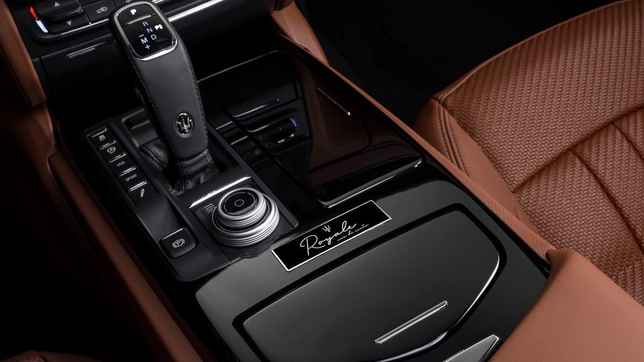Στο εσωτερικό, και με βάση την έκδοση GranLusso, οι διαφορές εντοπίζονται στις επενδύσεις των καθισμάτων Zegna Pelletesuta, μιας ιδιατερης πλεχτής δερμάτινης επένδυσης που παράγεται αποκλεισιτκά για την Maserati από κορυφαίας ποιότητας δέρμα Nappa. Το hi-end ηχοσύστημα της Bowers&Wilkins, τα φιμέ παράθυρα, η ηλεκτρική οροφή, τα γυαλισμένα ένθετα και μια πλακέτα που υποδηλώνει τον περιορισμένο αριθμό της παραγωγής ολοκληρώνουν την αίσθηση χλιδής και πολυτέλειας που αποπνέει η καμπίνα των εκδόσεων Royale, με τον υπόλοιπο εξοπλισμό να θεωρείται υπερπλήρης.