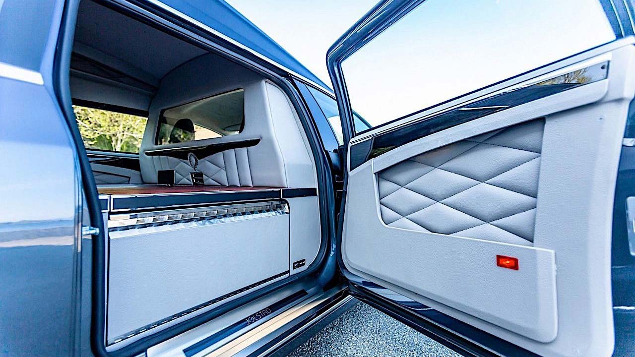 Βασισμένη σε Tesla Model S του 2018, η συγκεκριμένη νεκροφόρα έχει μόλις 1.000 χλμ. και έχει μεταποιηθεί πλήρως και τηρεί όλες τις προδιαγραφές ασφάλειας, ενώ το εσωτερικό της είναι πολυτελέστατο. Μάλιστα, προκειμένου να αυξηθεί το μήκος της ώστε να χωράει φέρετρο, χρειάστηκε να κοπεί το αυτοκίνητο στη μέση και να ενωθεί εκ νέου.